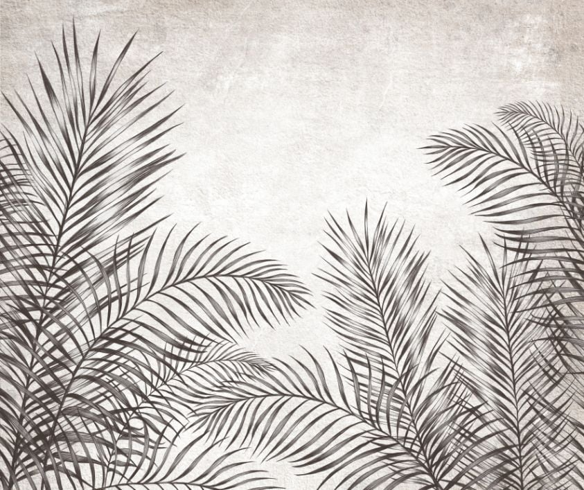 Tropical palm leaf mural in elegant tones