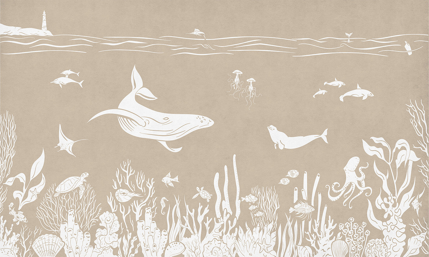 Bring the ocean's charm into your child's room with the monochrome sea brown wallpaper mural. This delightful kids room wallpaper features an array of sea creatures, including whales, dolphins, turtles, and more, all set in a monochrome brown palette. The intricate design will captivate your child's imagination, making bedtime stories even more exciting. Made from high-quality materials, this wallpaper is durable and easy to maintain. Whether your child loves marine life or you want to create a serene underwater theme, this wallpaper is a perfect choice. Order now and turn your child's room into an underwater adventure with the monochrome sea brown wallpaper mural. Shop now for free delivery.