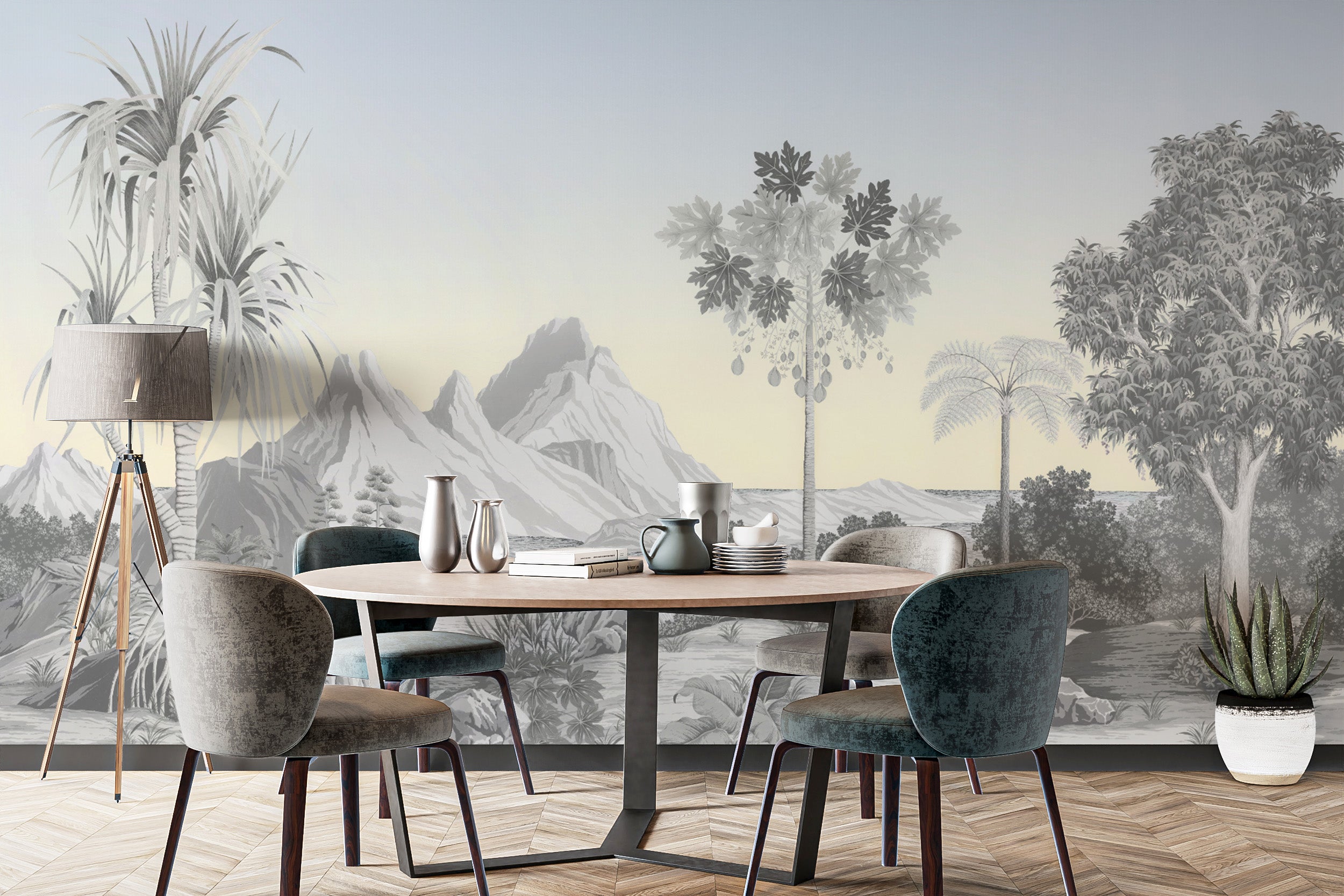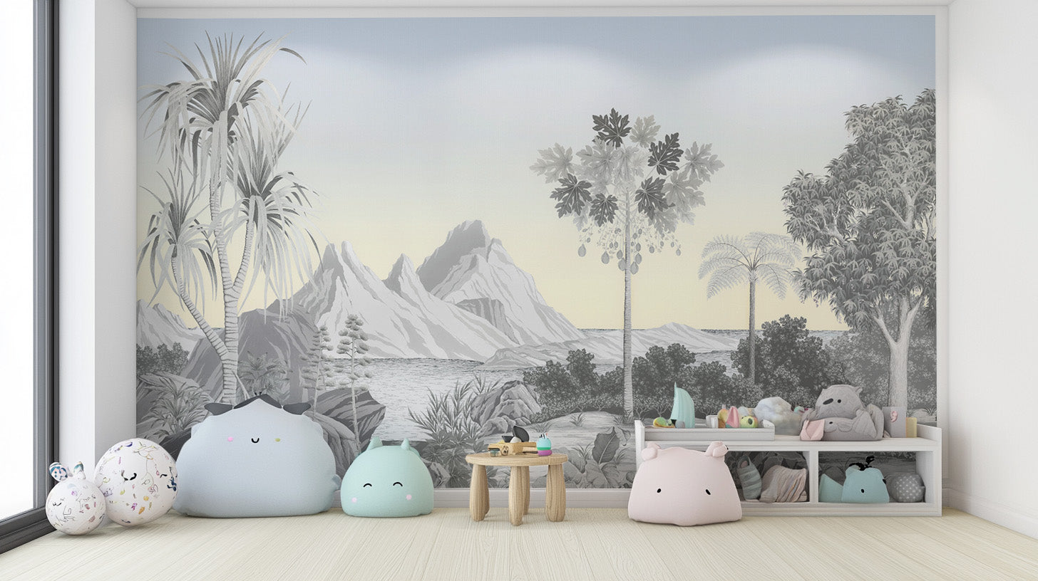 Minimalist tropical landscape wallpaper for stylish interiors