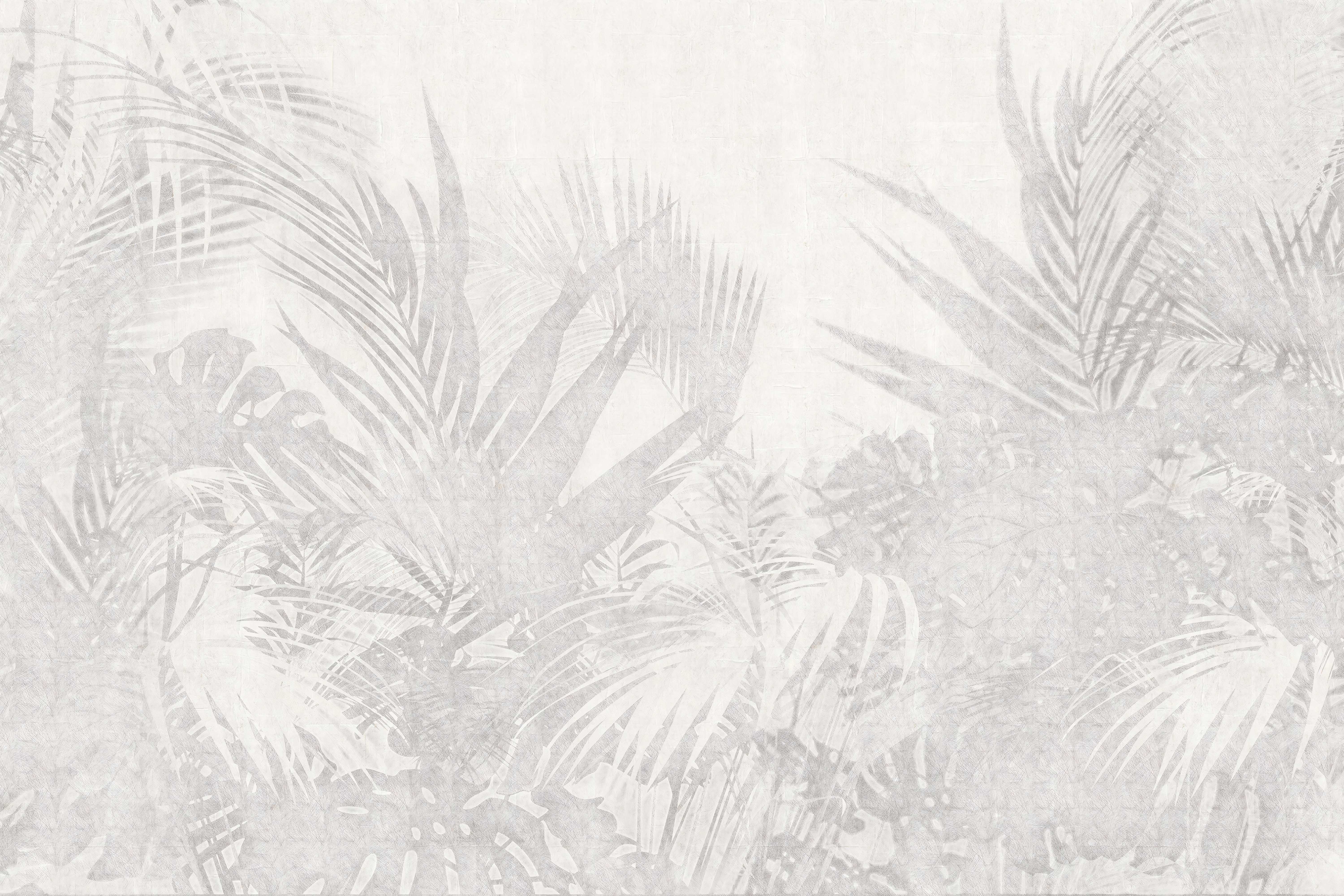 Minimalist tropical wallpaper with soft grey tones