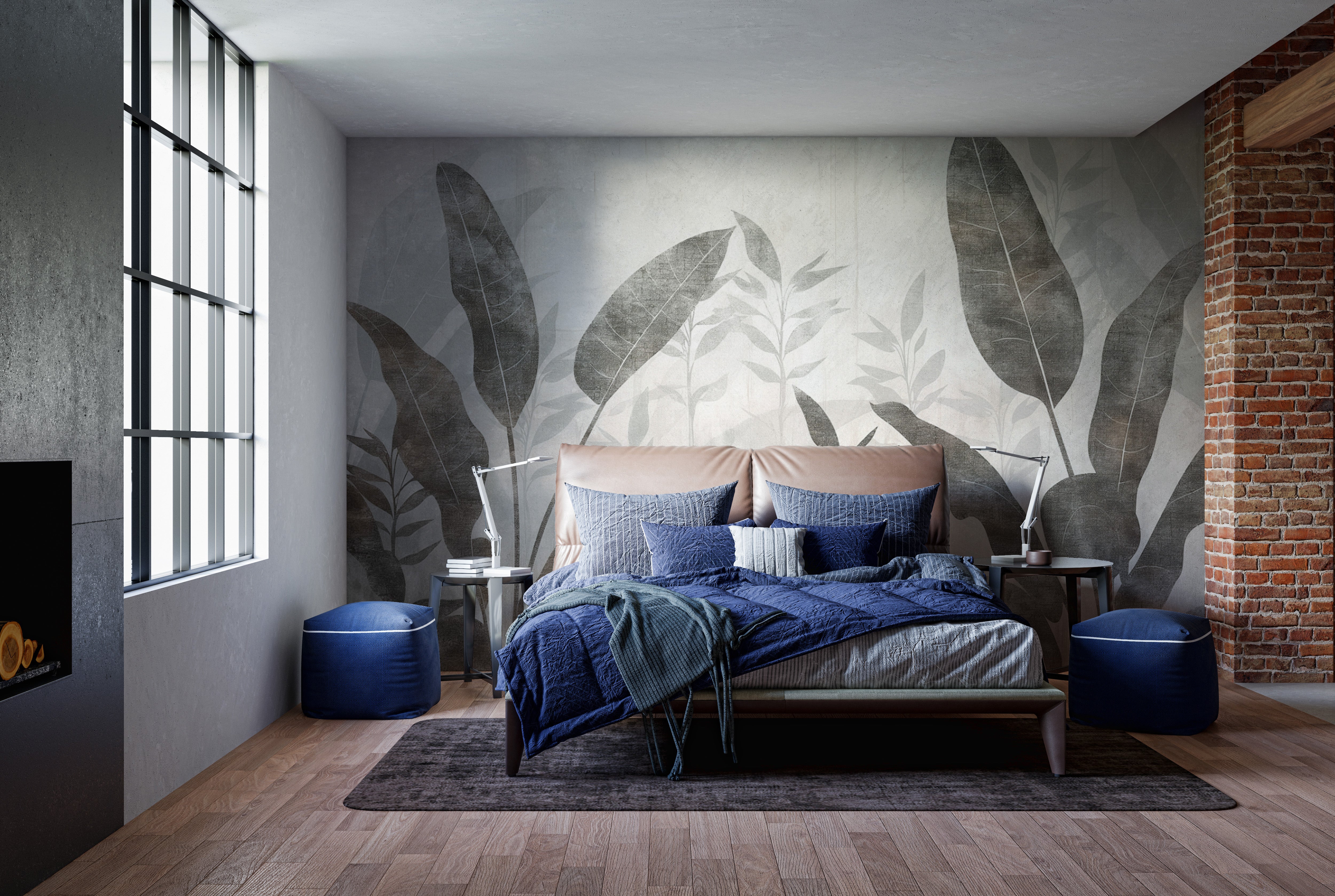 Create a refined setting with the monochrome tropical leaves mural featuring layered botanical elements in soft, earthy tones. The vintage botanical wallpaper mural blends modern and classic styles, offering a timeless appeal. Tropical leaves mural designs bring a nature-inspired look with delicate shading and organic textures. The monochrome botanical wallpaper enhances interiors with a balanced mix of contrast and depth. This minimalist nature wall mural complements various aesthetics and is ideal for bedrooms, living areas, or offices. Elegant foliage wallpaper mural options like this create a sophisticated atmosphere with natural elements and a seamless, high-quality finish.