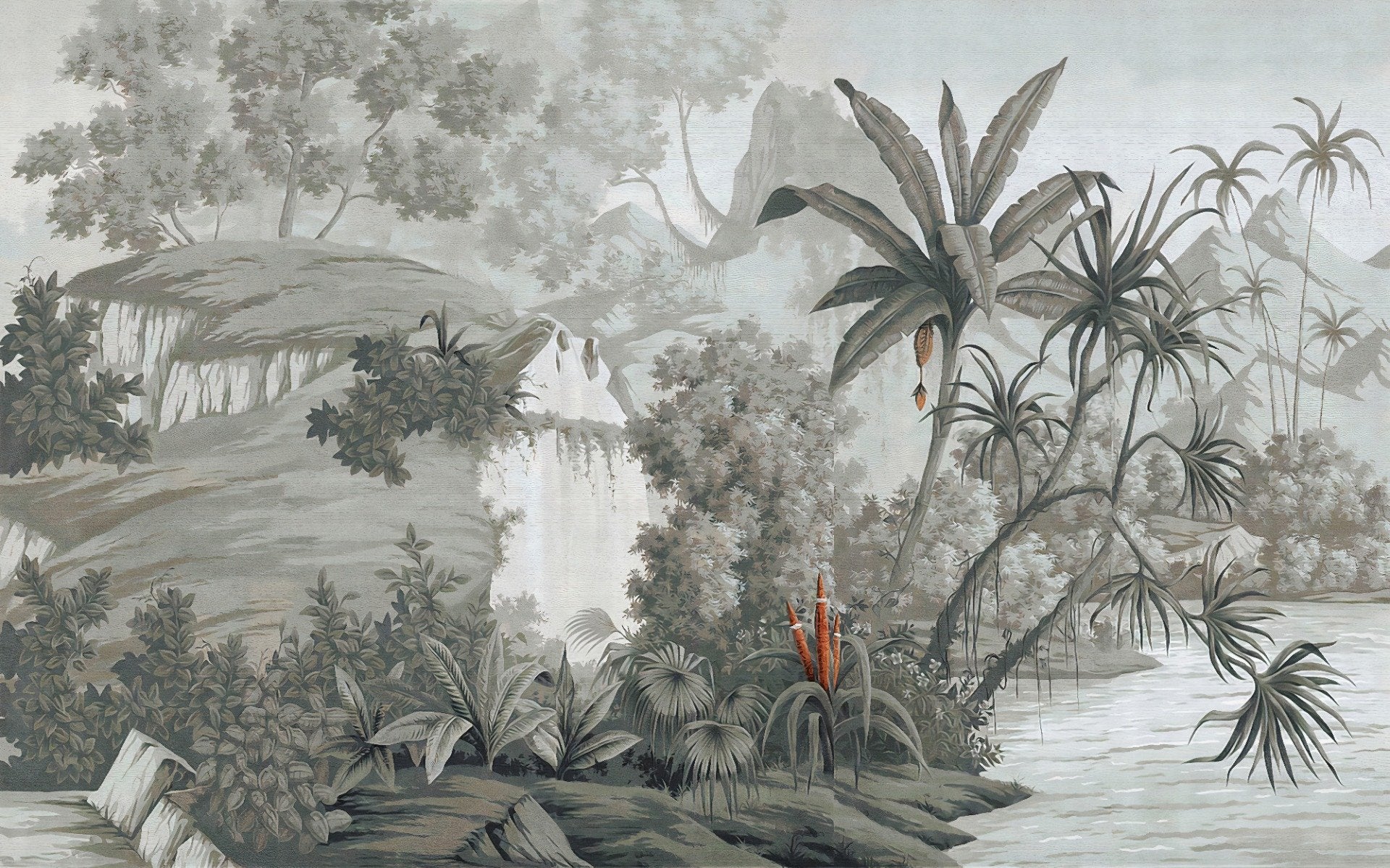 If you're looking to add a touch of wilderness to your home without being overwhelmed by bold colors, monotone wallpaper is a great option for you. The harmonious monotone wilderness mural wallpaper captures the beauty of nature in a subtle but captivating way. The monochromatic color scheme creates a soothing atmosphere, perfect for a relaxing bedroom or living space. This wallpaper is a great way to bring the outdoors inside without transforming your entire space. Let the calming energy of nature bring balance to your home with this stunning monotone wallpaper.