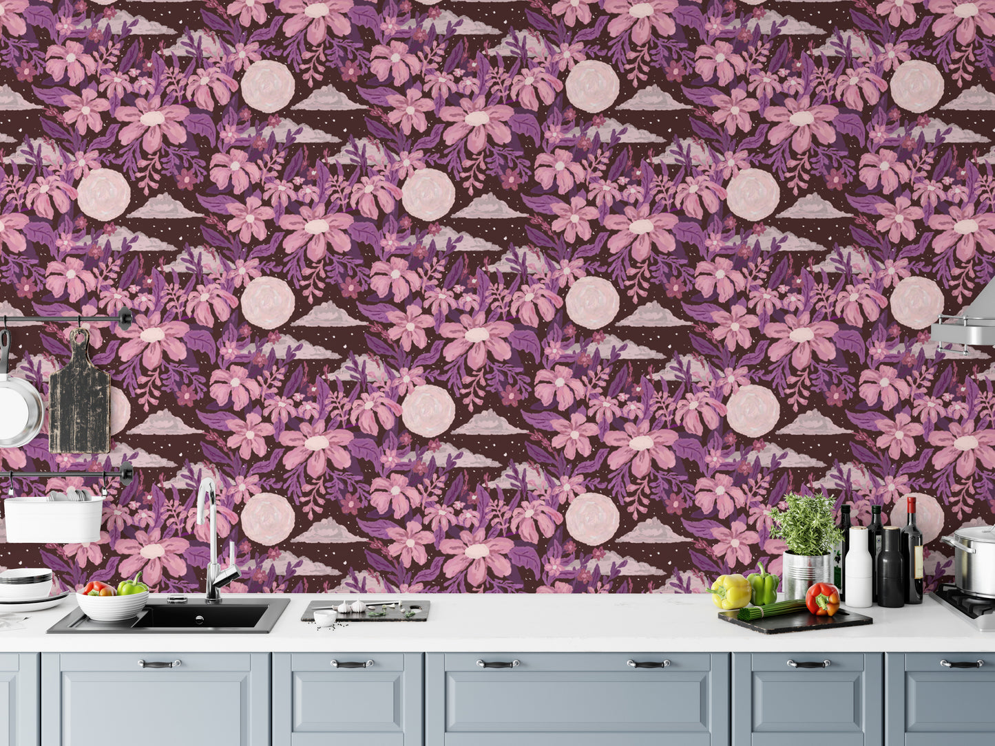 Moon-inspired purple wallpaper elegance