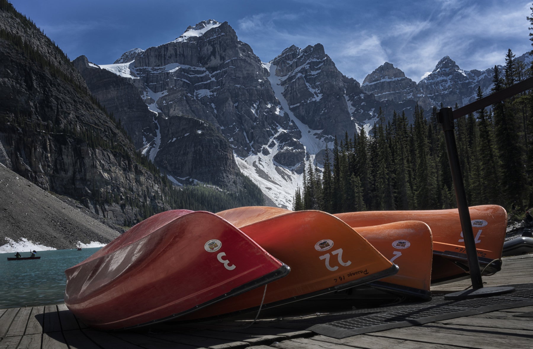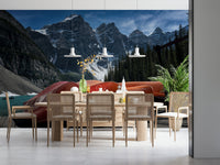 Capture the spirit of adventure with this scenic wallpaper. Bright canoes contrast with the majestic snow-capped mountains and serene lake. The palette is perfect for adding a burst of colour. Bring the outdoors in with wallpaper for walls that makes a statement in living rooms, bedrooms, or office spaces. Transform your interior with the beauty of the Canadian Rockies and a promise of summer recreation.