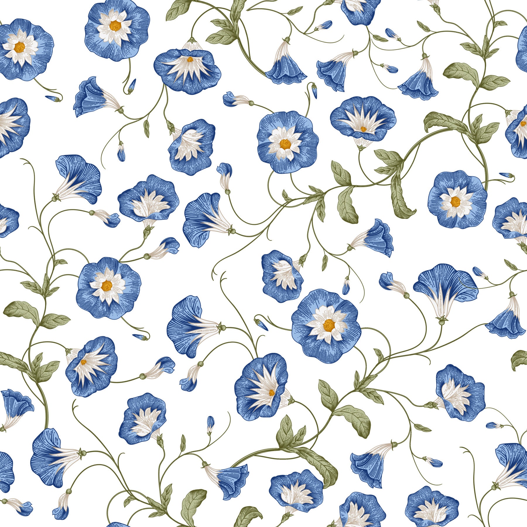 Illustrated Morning Glory wallpaper design displaying artistic floral sketches