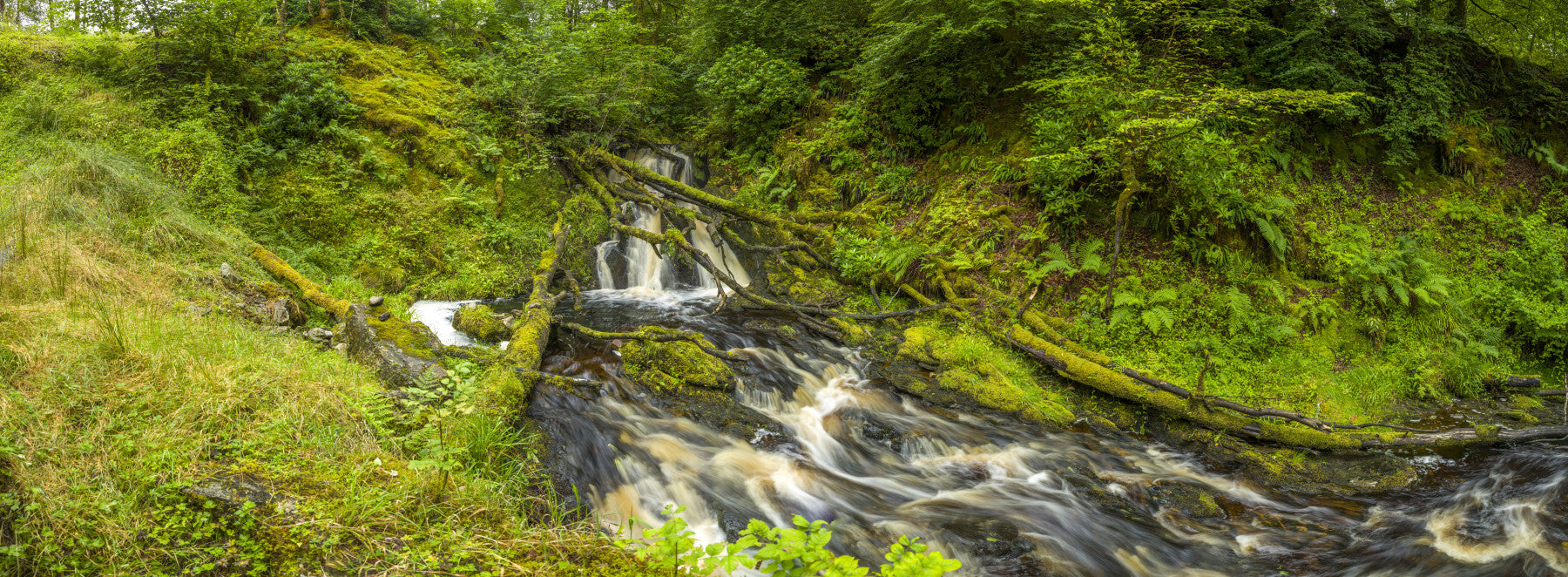 Water stream thourgh forest. Bring the tranquility of a woodland stream into your home with this captivating wallpaper for walls. Lush greenery, vibrant moss, and the gentle cascade of water create a relaxing environment. It uses a natural color scheme that works well in a living room, bedroom, or office space. The flowing water and abundance of green promotes peace in any room. It is easy to apply and adds a nature-inspired accent.