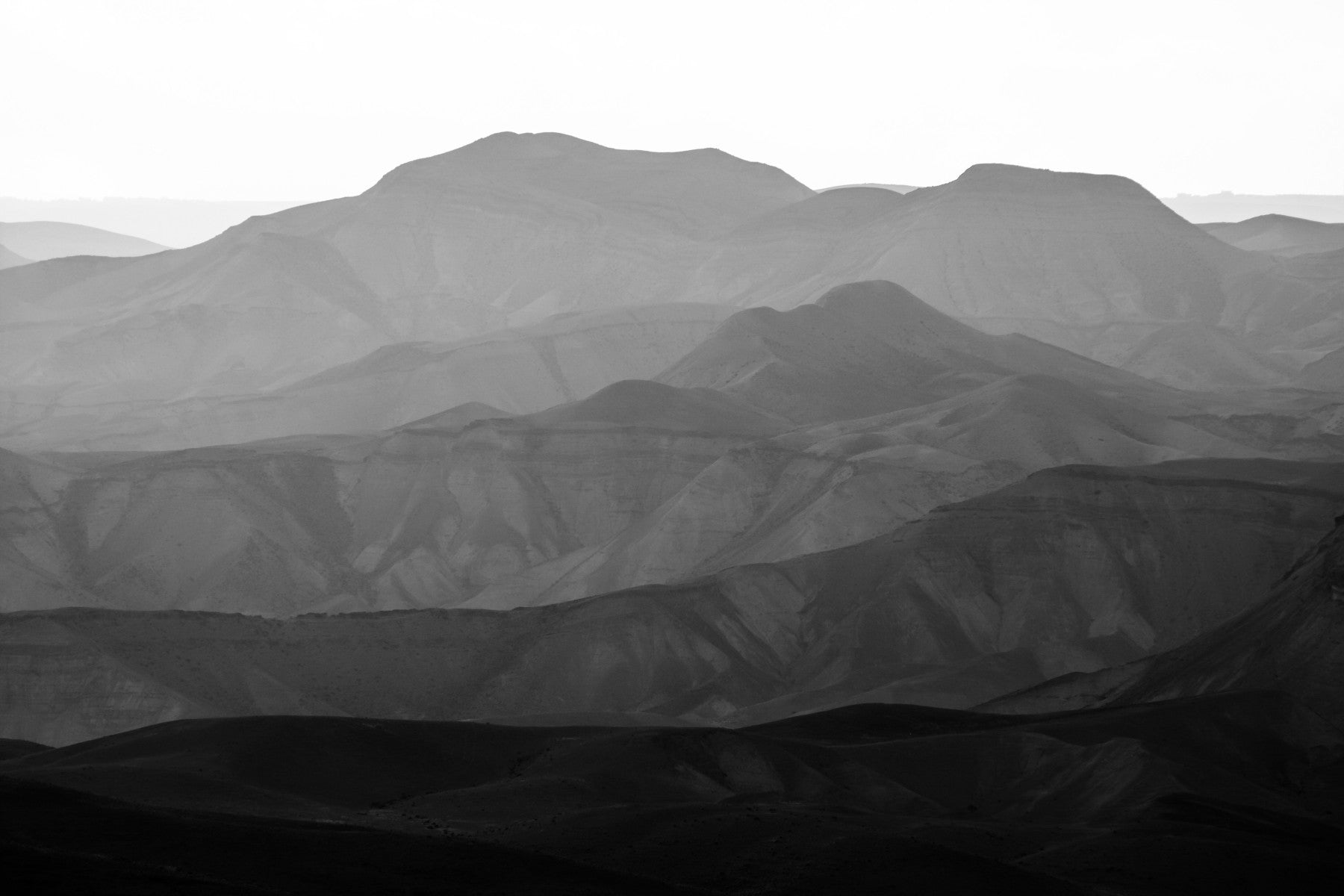 Embrace the stark beauty and serene solitude of the Judean Desert with Mountains of the Judean Desert 10. This black and white wallpaper captures the timeless majesty of the desert landscape, presenting a layered panorama of rolling mountains that fade into the horizon. The monochromatic palette emphasizes the textures and subtle gradations of light and shadow, creating a visually captivating and calming effect. Perfect for those seeking a minimalist yet powerful statement, this image brings the ancient and enduring spirit of the desert into your digital space. Invite a sense of peaceful contemplation and the grandeur of nature's artistry to your screen with this stunning wallpaper.