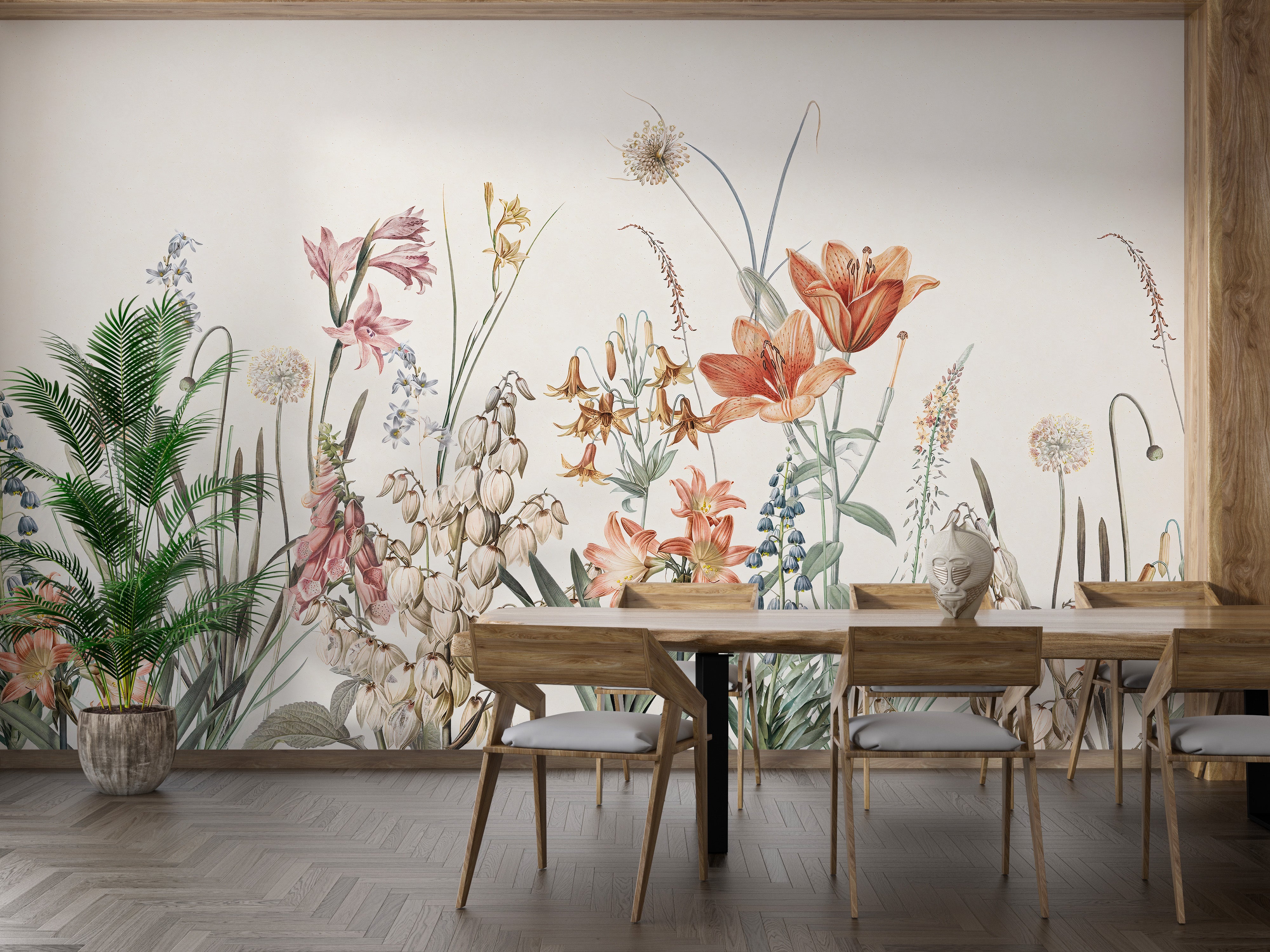 Artistic floral wall mural with painted tones