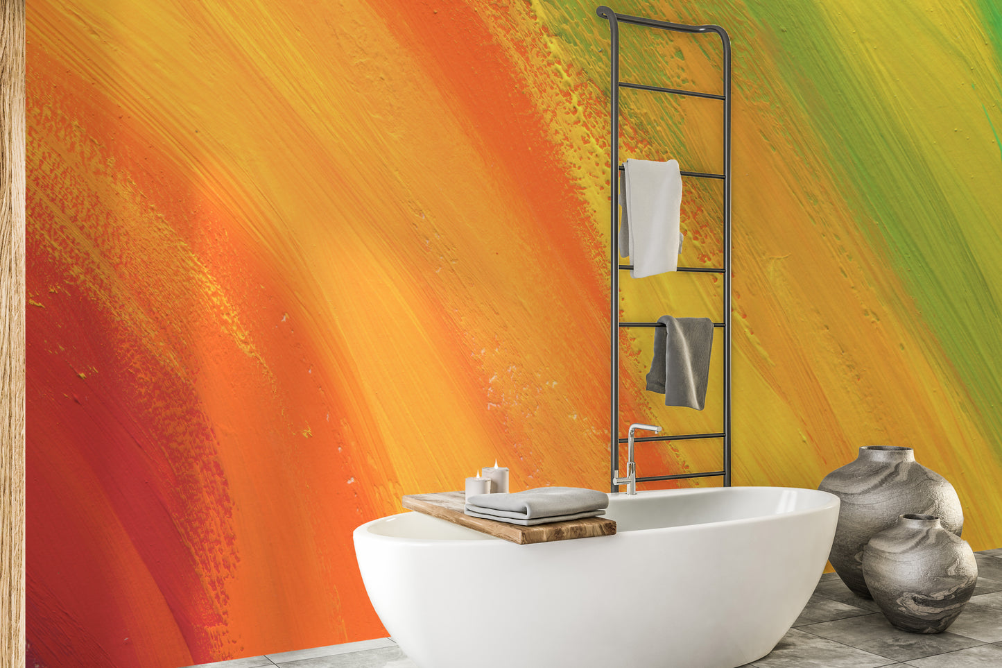 Brighten your living room with this eye-catching, colourful rainbow mural wallpaper. It features a dazzling array of colours, bringing a lively and energetic vibe to the room. The peel and stick wallpaper is designed to be a striking focal point, adding a playful and vibrant touch to your living area. Ideal for those who love to surround themselves with vivid colours, it complements and enhances the space's overall aesthetic.