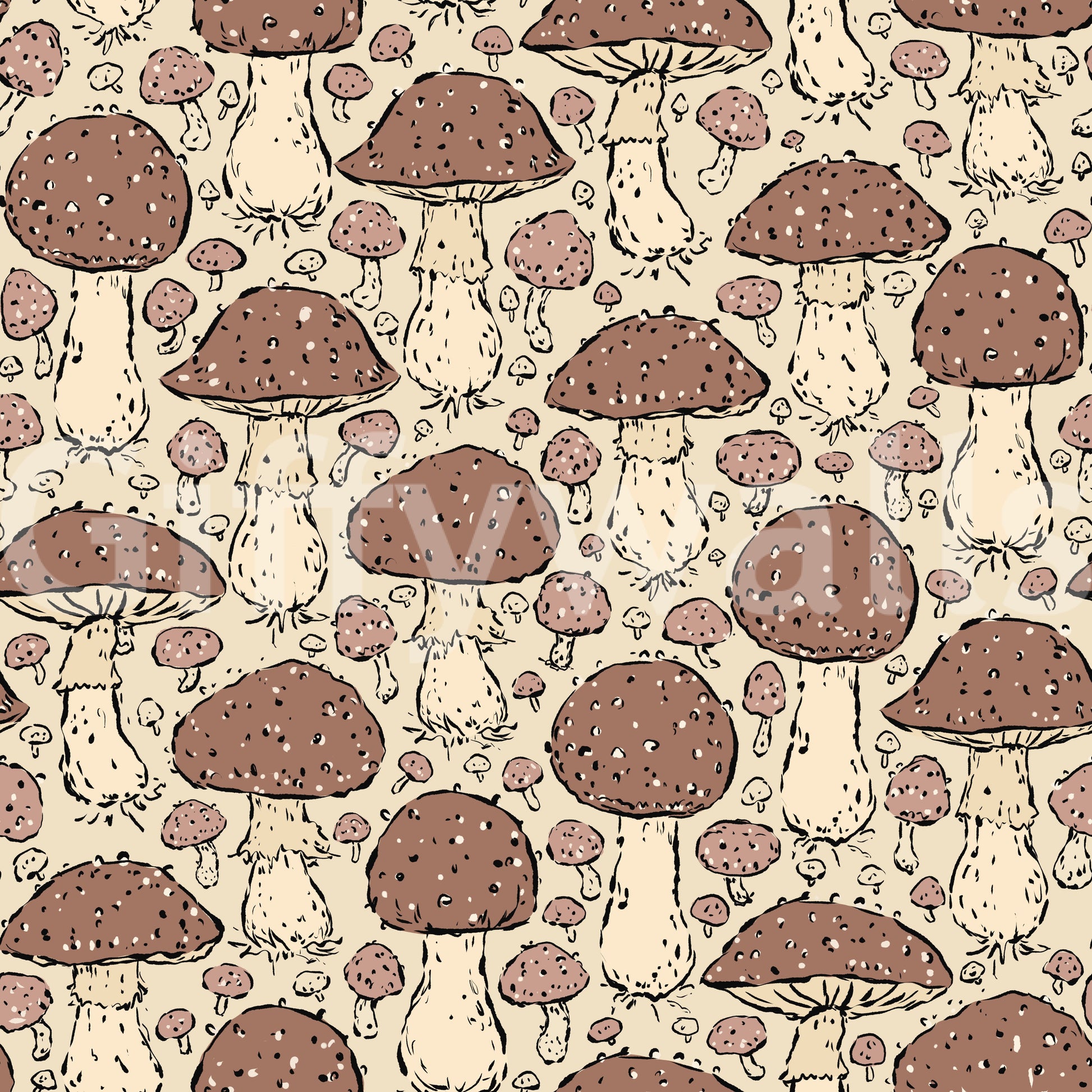 Mocha beige mushroom pattern wallpaper for cozy rooms