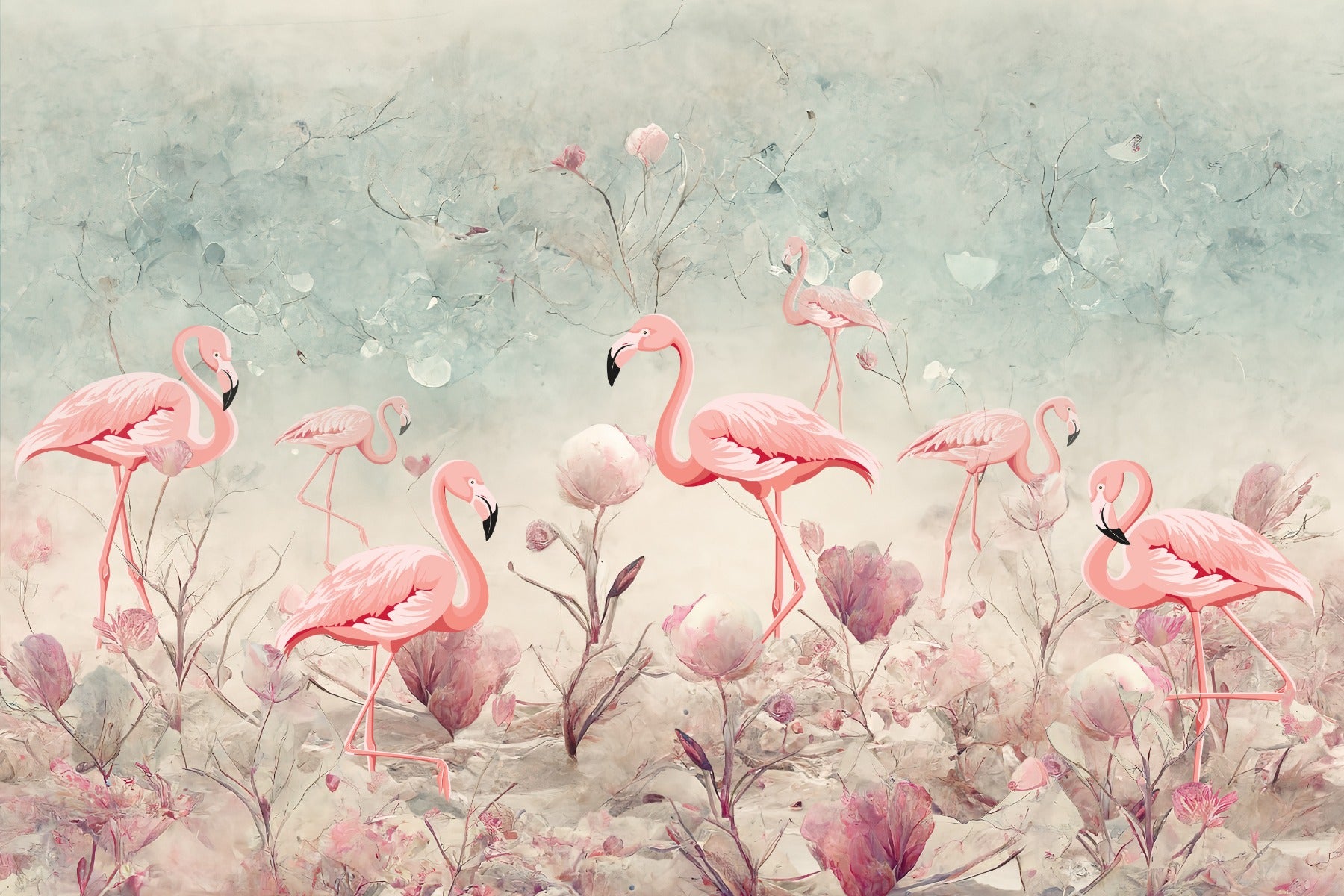 Serene flamingo grove mural perfect for nature-inspired interiors.
