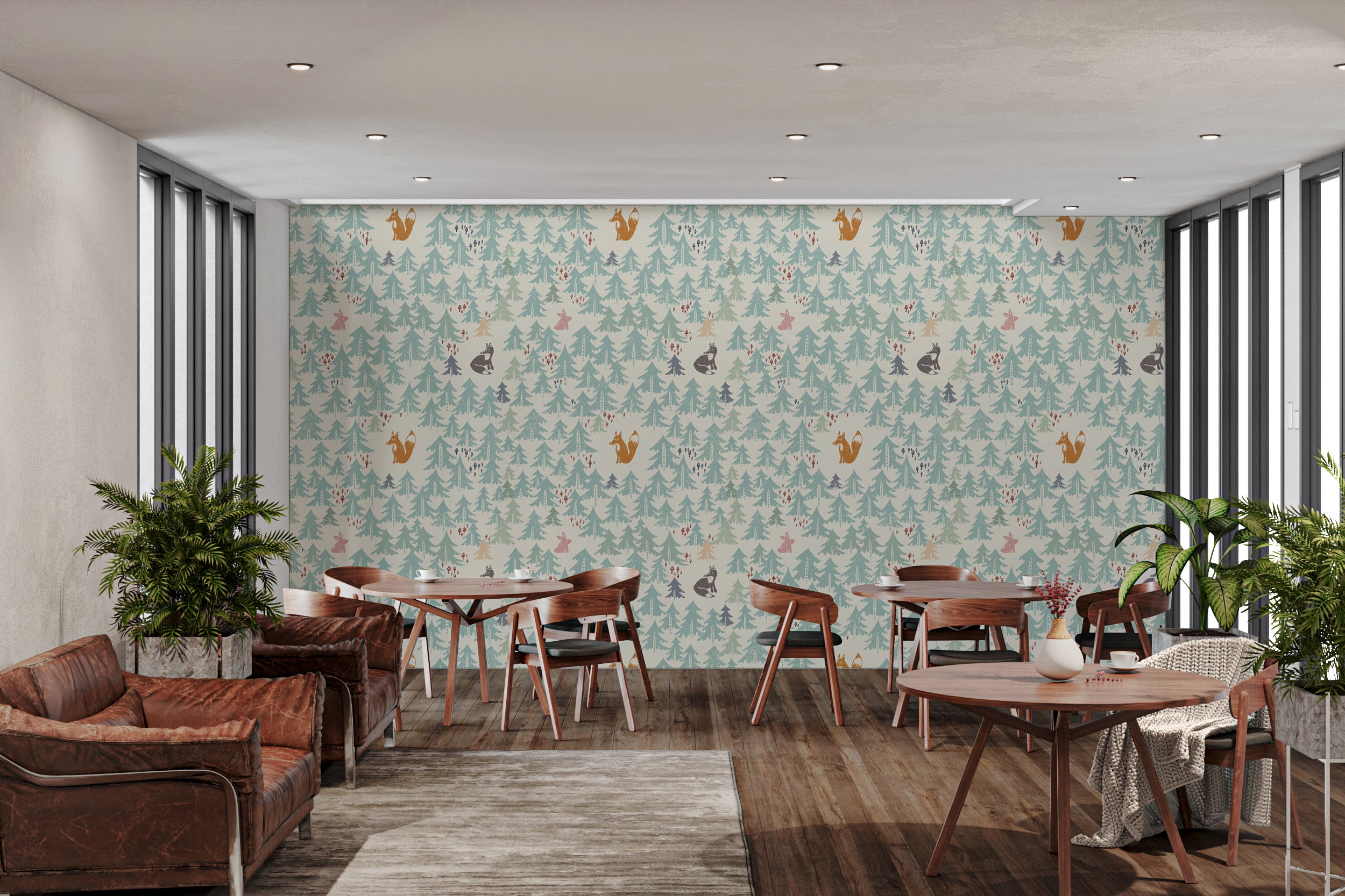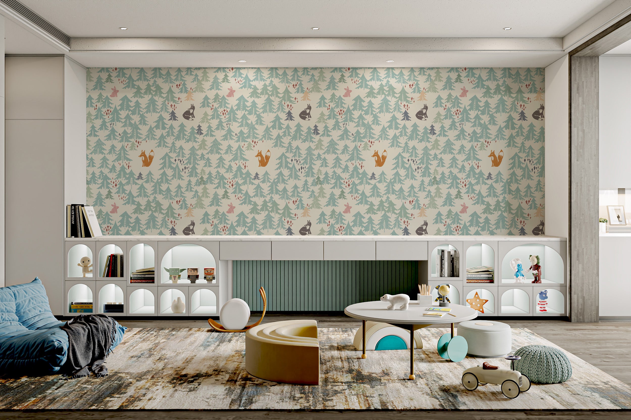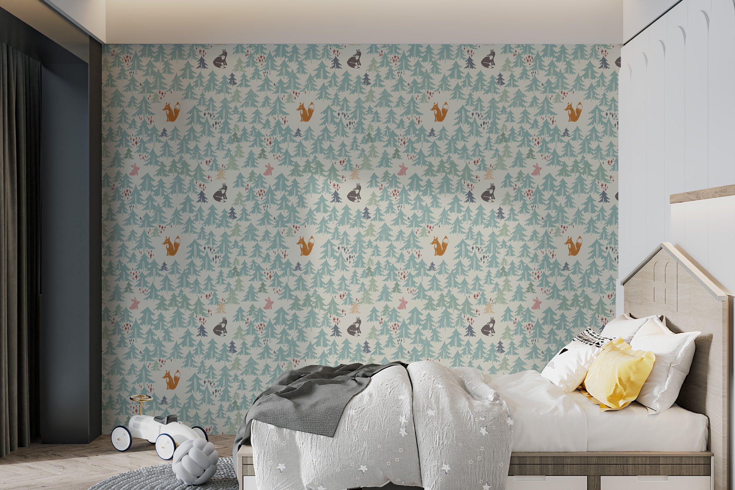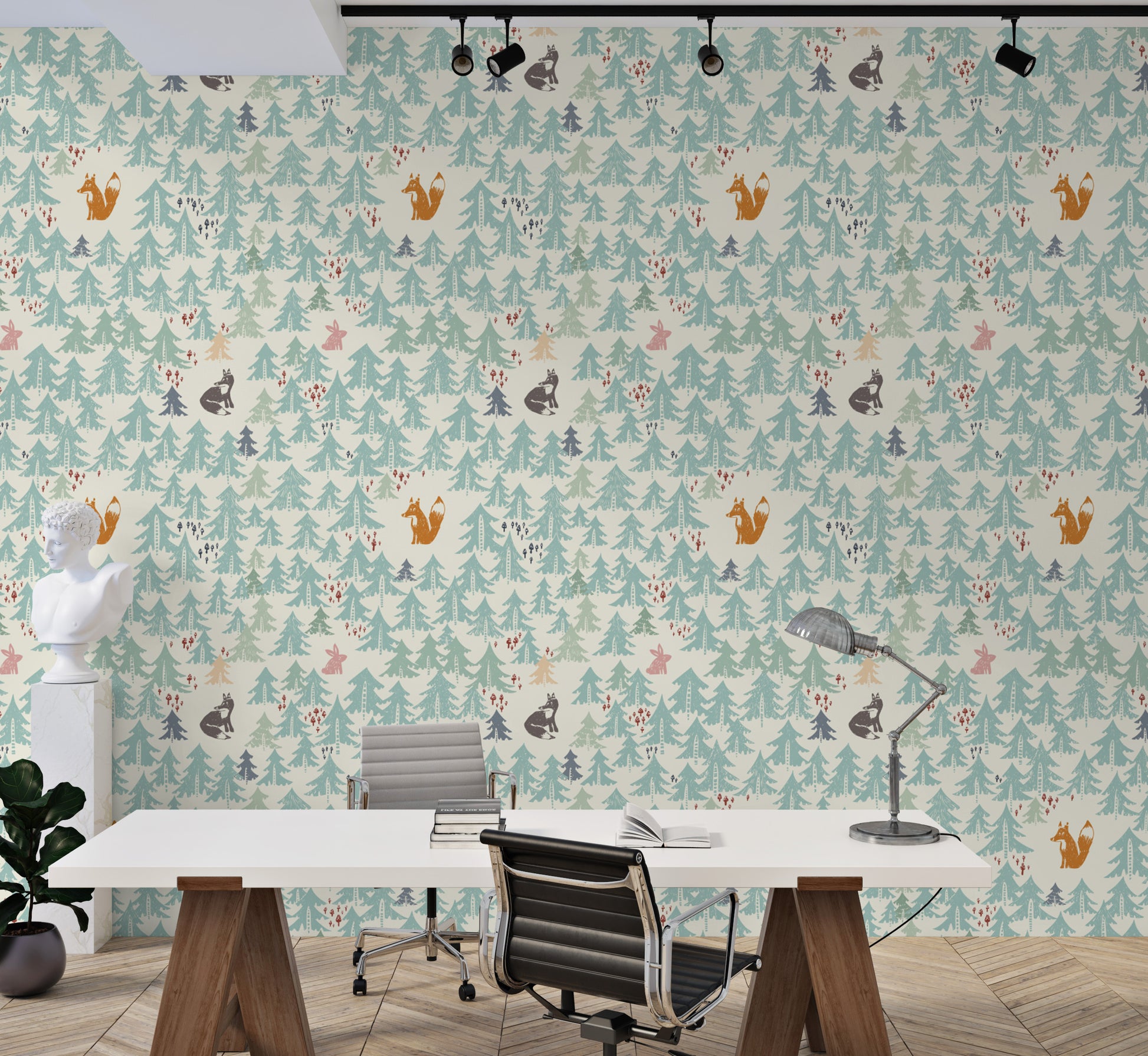 Drift into a realm where whimsical woodland creatures frolic among towering pines and secret mushrooms. The mystical woodland creatures wallpaper enchants with playful foxes and delicate fauna, perfect for adding a touch of wonder to any kids room. Vivid imaginations will soar in this forest of dreams, with each glance revealing new hidden tales within the trees. A tapestry of adventure awaits, inviting young minds to craft their own storybook scenes. This magical wallpaper serves as a backdrop for childhood reverie, a canvas where each day, little eyes can seek out a fresh, hidden nook of their own enchanted woods.
