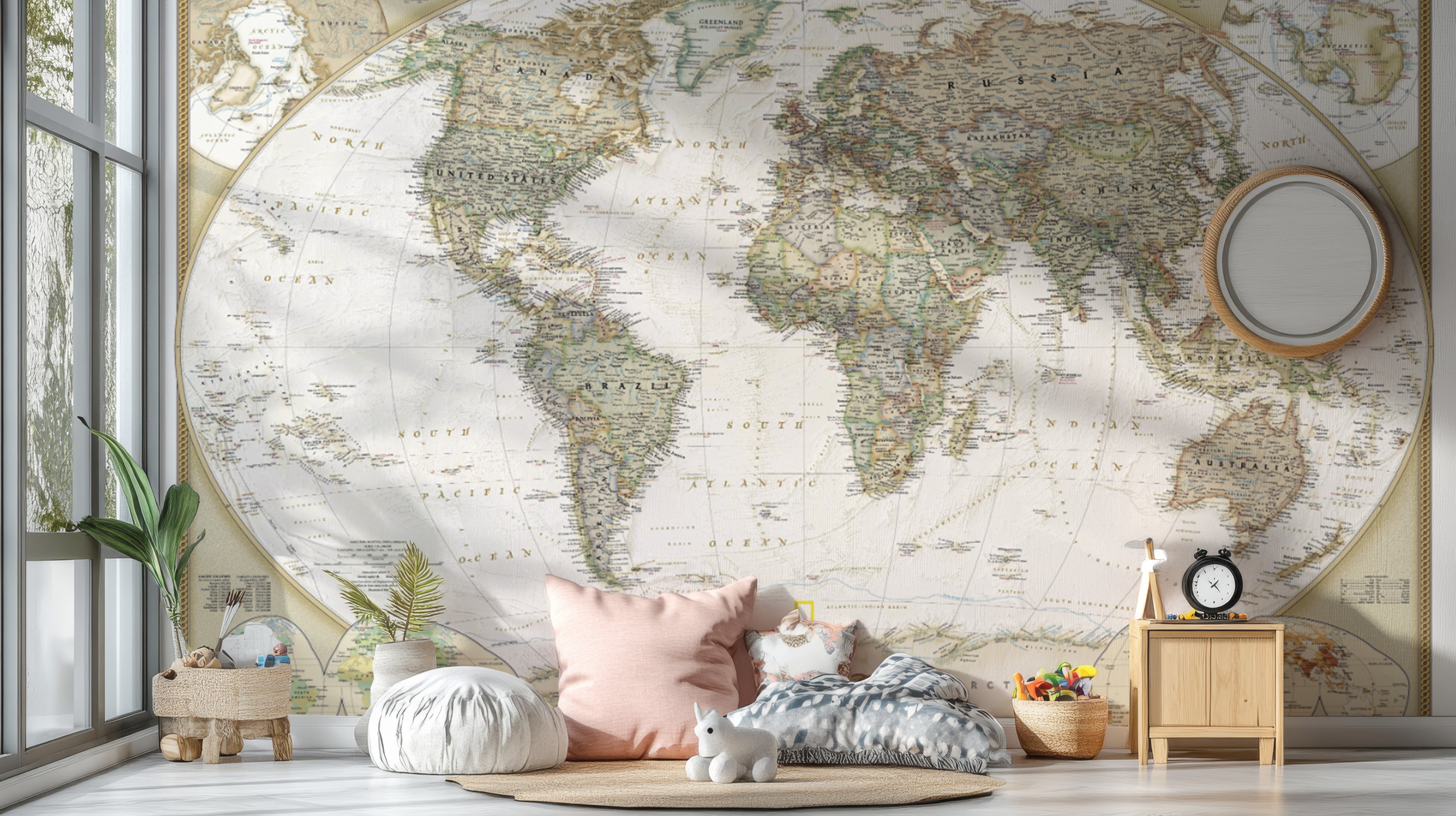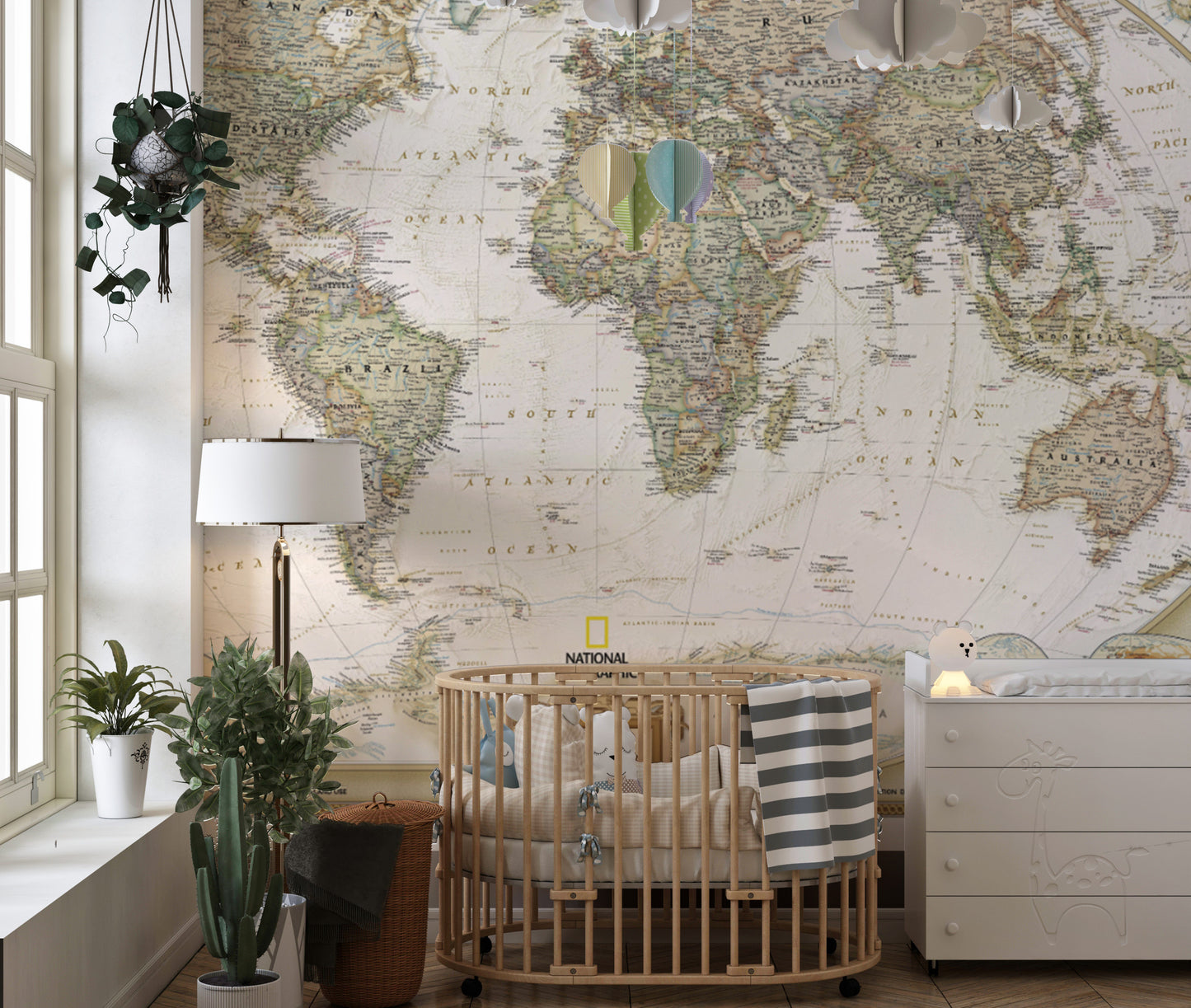 Discover global geography with the national geographic political world map wallpaper. This detailed political world map highlights country borders, major cities, and landmarks, making it perfect for classrooms, offices, or study rooms. The vintage design with earthy tones adds a classic touch, while the high-resolution print ensures every detail is clear and easy to read. Insets provide additional information on vegetation, land use, and population density. Whether you're a student, traveler, or geography enthusiast, this National Geographic political world map is an ideal educational tool for exploring the world's political boundaries and diverse regions.