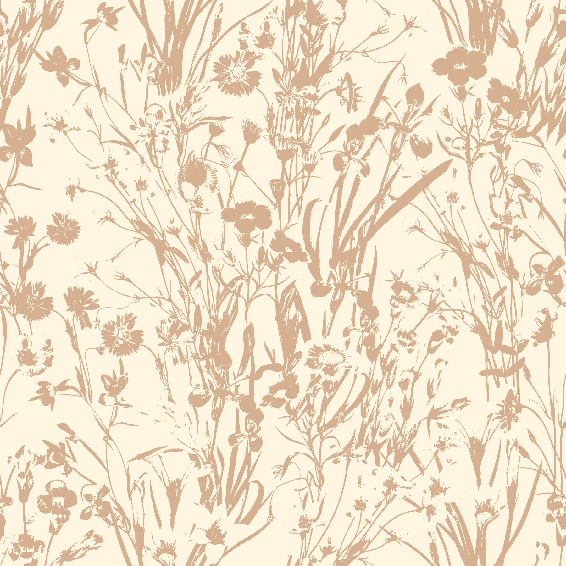 Bring a touch of delicate charm to your home with this floral silhouette design. The gentle, beige-toned flowers and grasses create a serene and calming atmosphere. It presents a simple yet sophisticated botanical print. This wallpaper for walls brings a sense of nature indoors. Install it in your bedroom for a peaceful retreat, in your living room for an organic touch, or use it in a hallway for a subtle, welcoming look. The neutral color palette complements various interior styles.