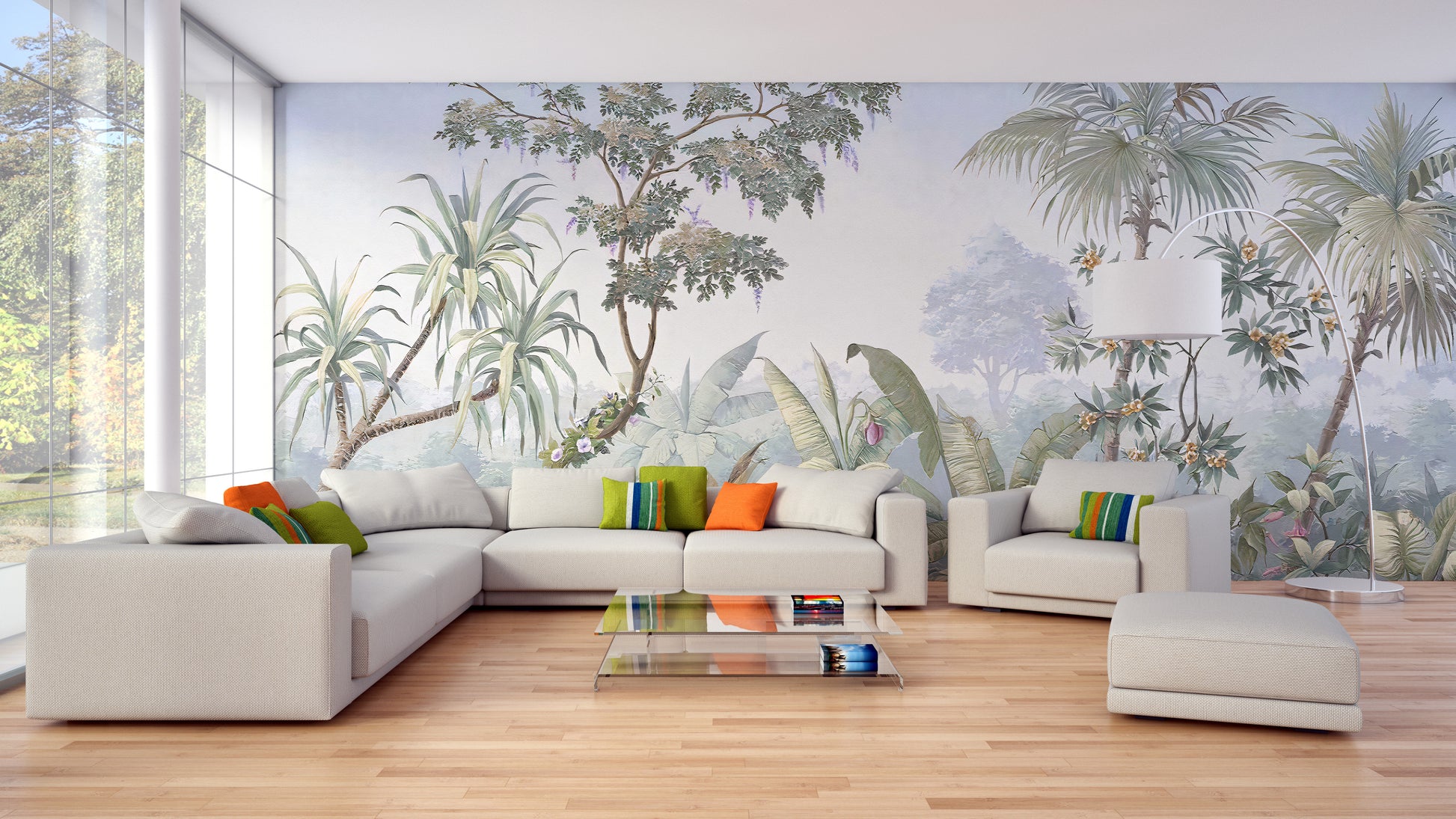 Immerse yourself in a lush, vibrant jungle landscape with our new, dense watercolour jungle mural wallpaper. Experience the thrill of adventure and the beauty of nature from the comfort of your home. Each stroke of the watercolour paint captures the intricate details of the jungle foliage, from the towering trees to the exotic flowers. Bring a touch of tranquility to your living space, and let this mesmerizing mural transport you to your jungle oasis. This stunning watercolour wallpaperadds a natural charm to any room.
