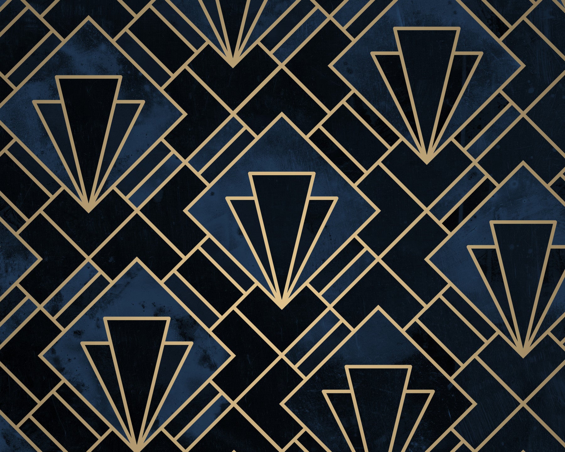 Deep blue and gold Art Deco mosaic design for modern interiors