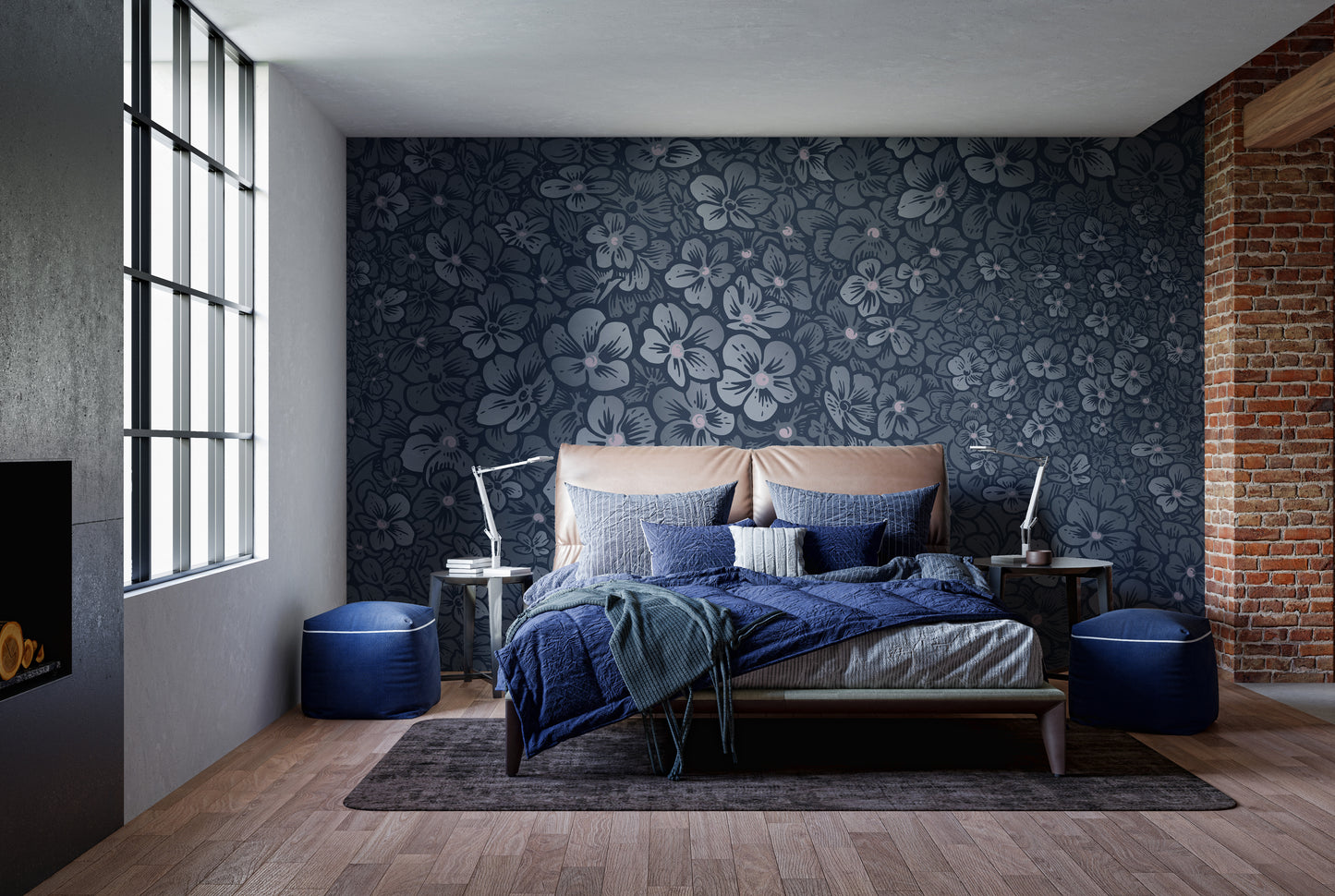 Crafted with high-quality materials, this flower wallpaper is durable and easy to install, ensuring a smooth and flawless application. Its timeless design ensures it remains a focal point in your home for years. Whether you're looking to revitalize your living room or add a splash of colour to your walls, this navy blue colour flower seamless pattern mural wallpaper is the perfect choice for a chic and inviting atmosphere.