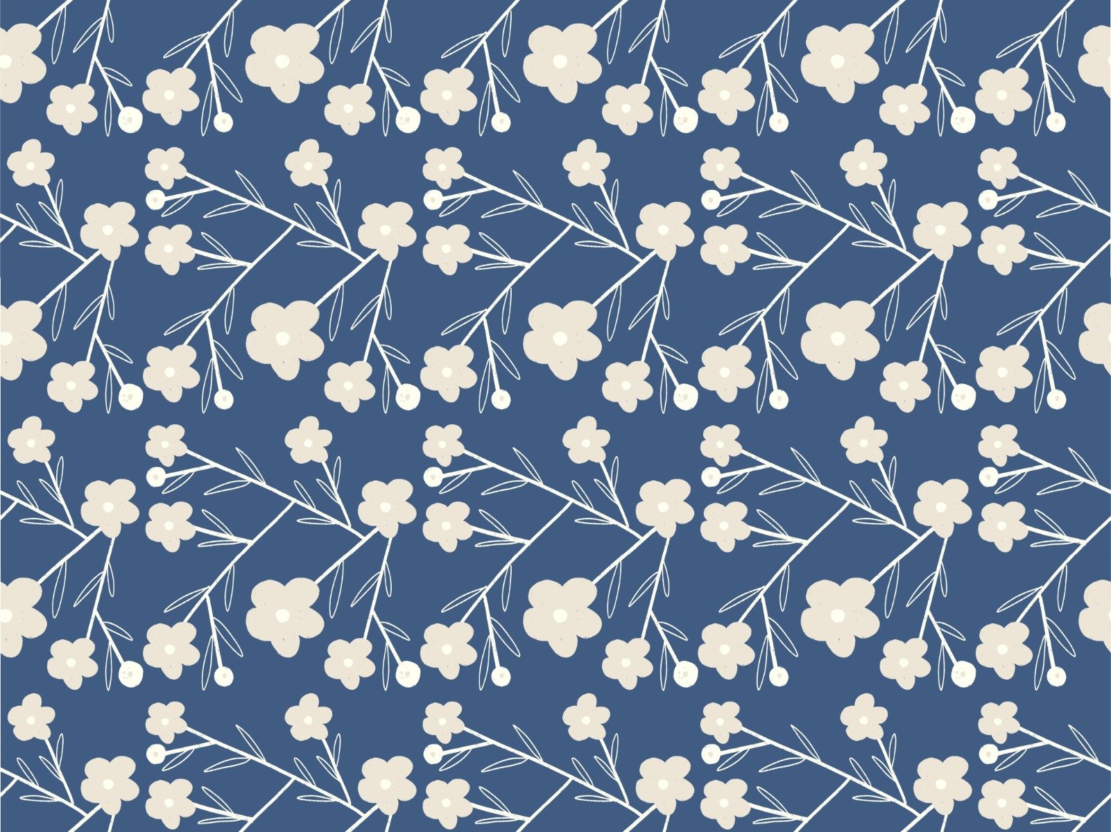 Stylish Navy Blue Modern Flower Buds Bush Wallpaper
