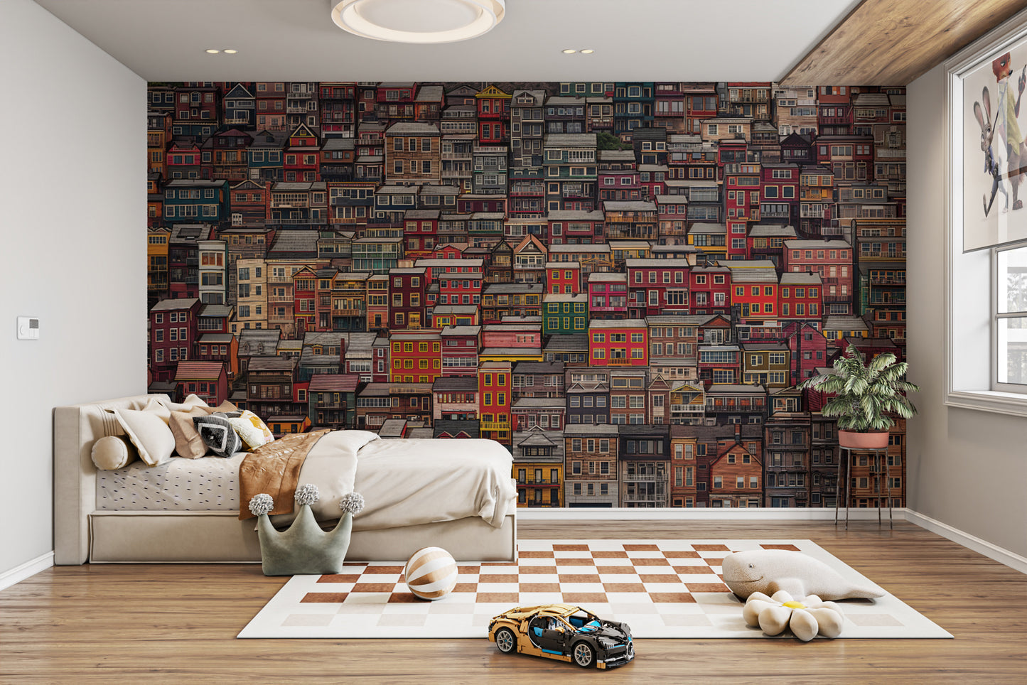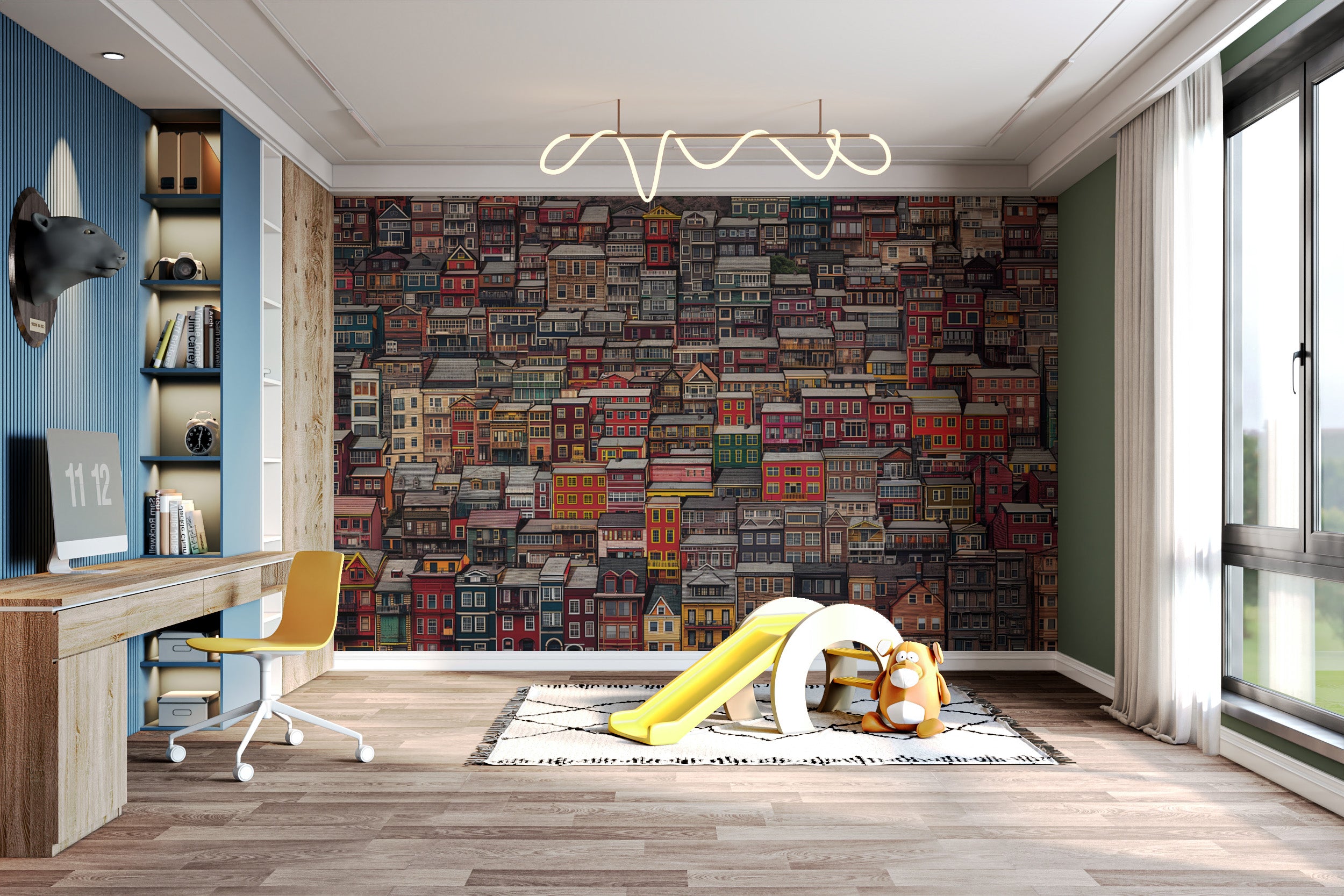 Let this Nested Neighborhoods Urban Wallpaper take your walls to a city-inspired experience. With a stunning variety of colorful stacked houses it provides a bold and dynamic visual effect. It might be alright for living rooms, offices, or creative spaces to enhance creativity and urban characteristics. Intricate design captures urban life while lending itself nicely to a different kind of chic style of decor. Make with the finest environmentally friendly materials, this wallpaper has very easy installation and a long-lasting texture. Let the unique wallpaper beautify your interior by transforming your walls into pieces of art.