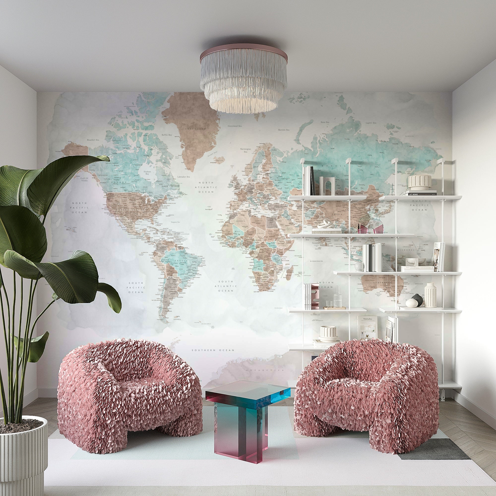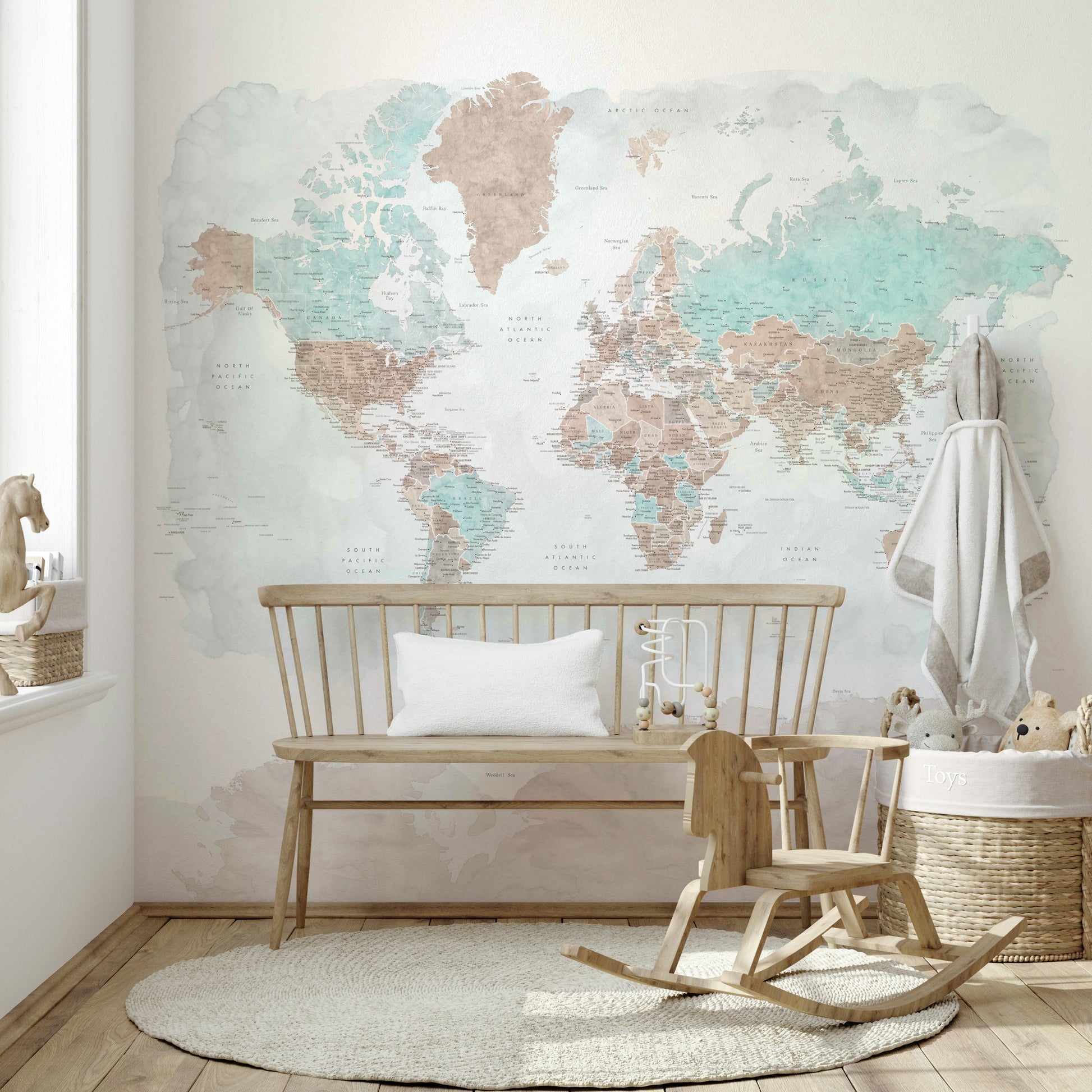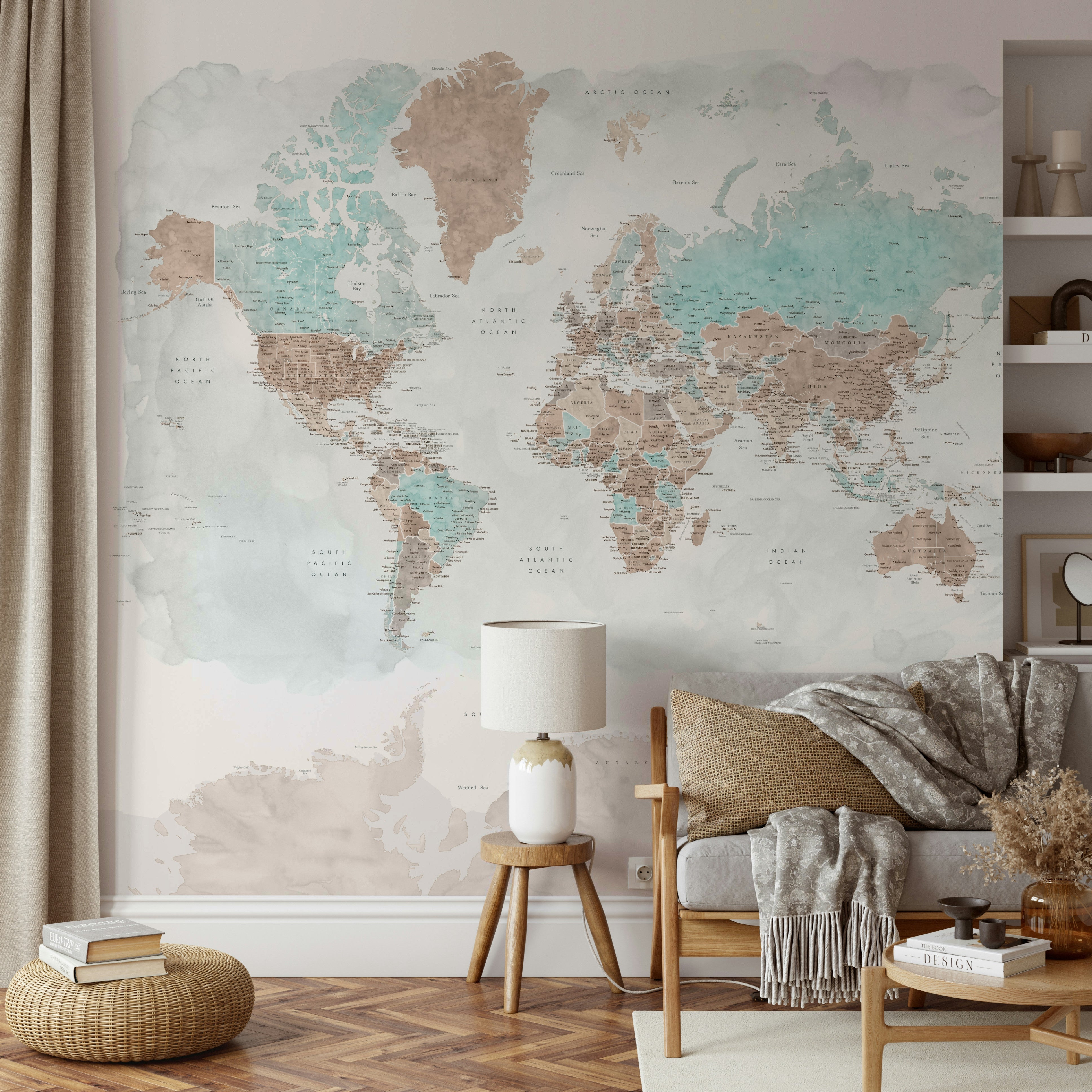 Elevate your interiors with the understated elegance of our Neutral Watercolor World Map Wallpaper — a perfect harmony of soft tones, artistic detail, and global charm. This mural blends hand-painted watercolor artistry with a muted neutral color palette, creating a calming, sophisticated backdrop for any room. Crafted for modern explorers and lovers of refined design, the map showcases delicately labeled continents, countries, and major cities in a soothing fusion of beige, taupe, sand, and misty blue. Ideal for minimalist, Scandinavian, boho, or earthy decor themes, it brings depth and meaning to your walls without overwhelming your space.