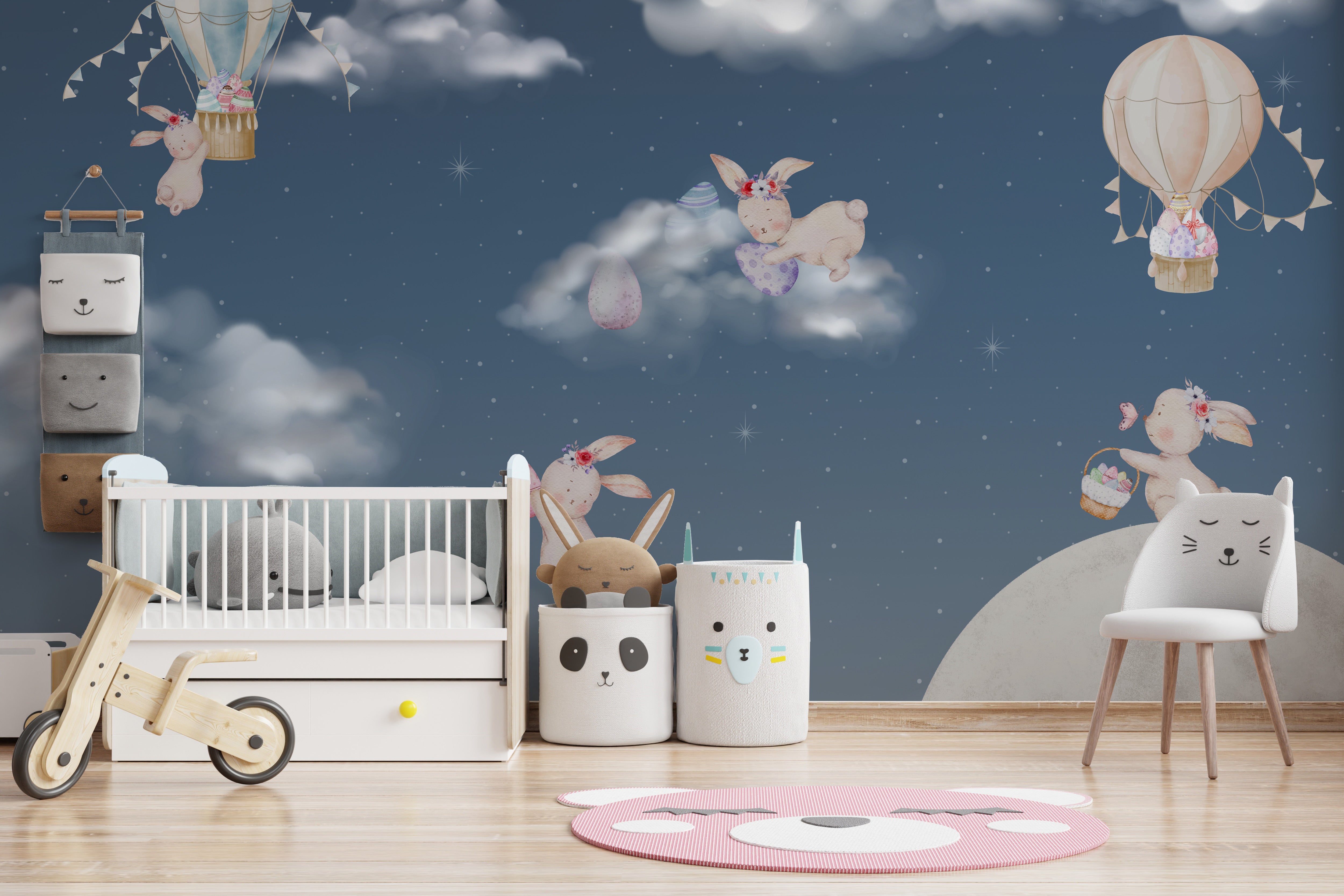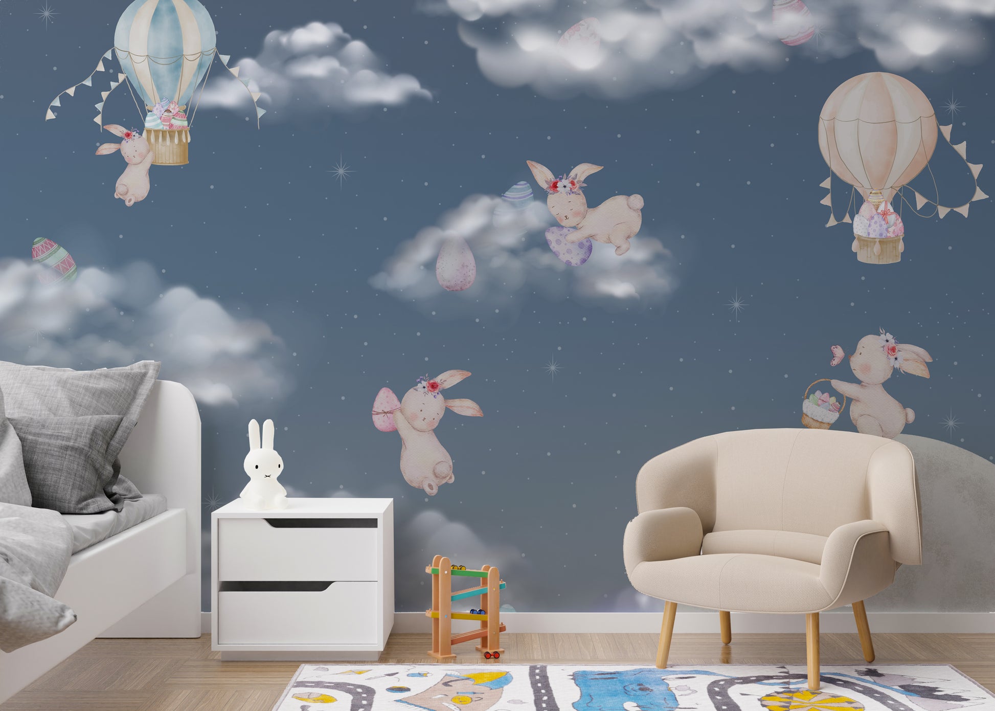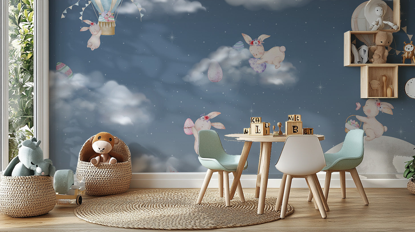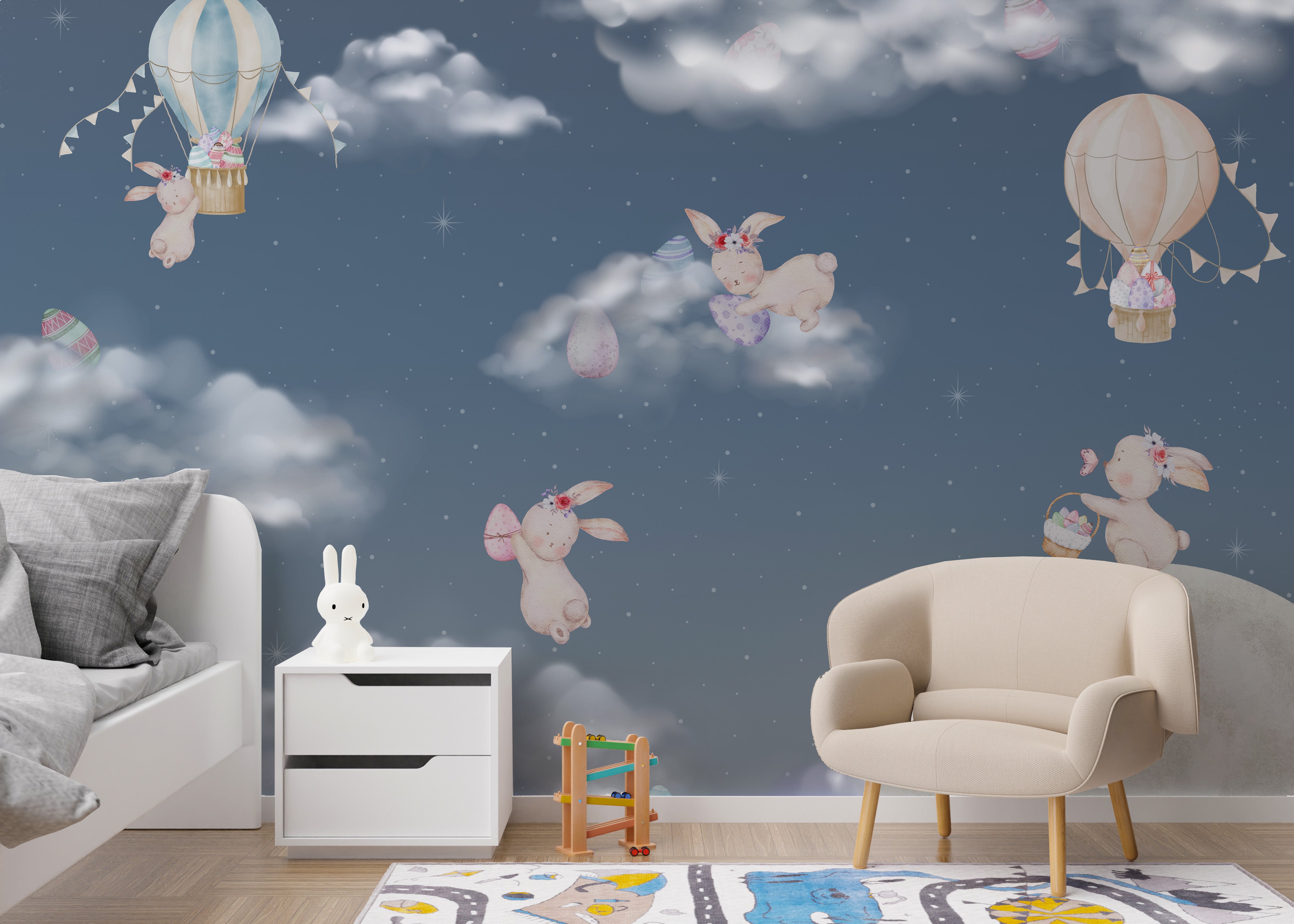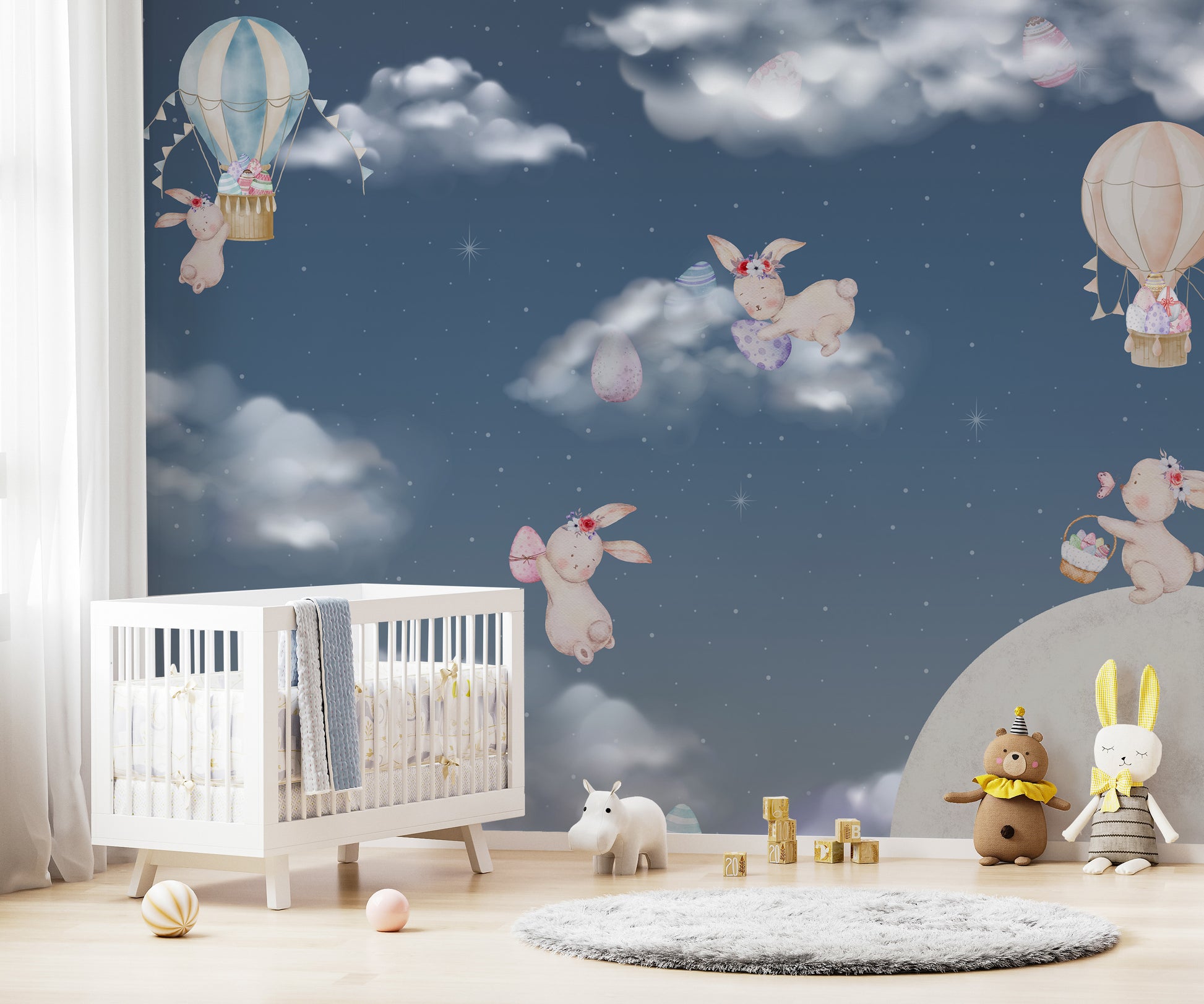 Looking for a soft and dreamy Easter wallpaper for your child’s room or a small space? This Night Sky Bunny Easter Wallpaper is a perfect choice. It has cute bunnies, pastel Easter eggs, and gentle clouds floating in a night sky. It’s a peel and stick wallpaper that’s easy to apply, removable, and safe for renters. Whether you want Easter wallpaper for a nursery, fun bunny wallpaper for Easter, or something sweet for kids’ walls, this one brings a calm springtime feel. It’s great for anyone decorating for Easter in a simple and stylish way.