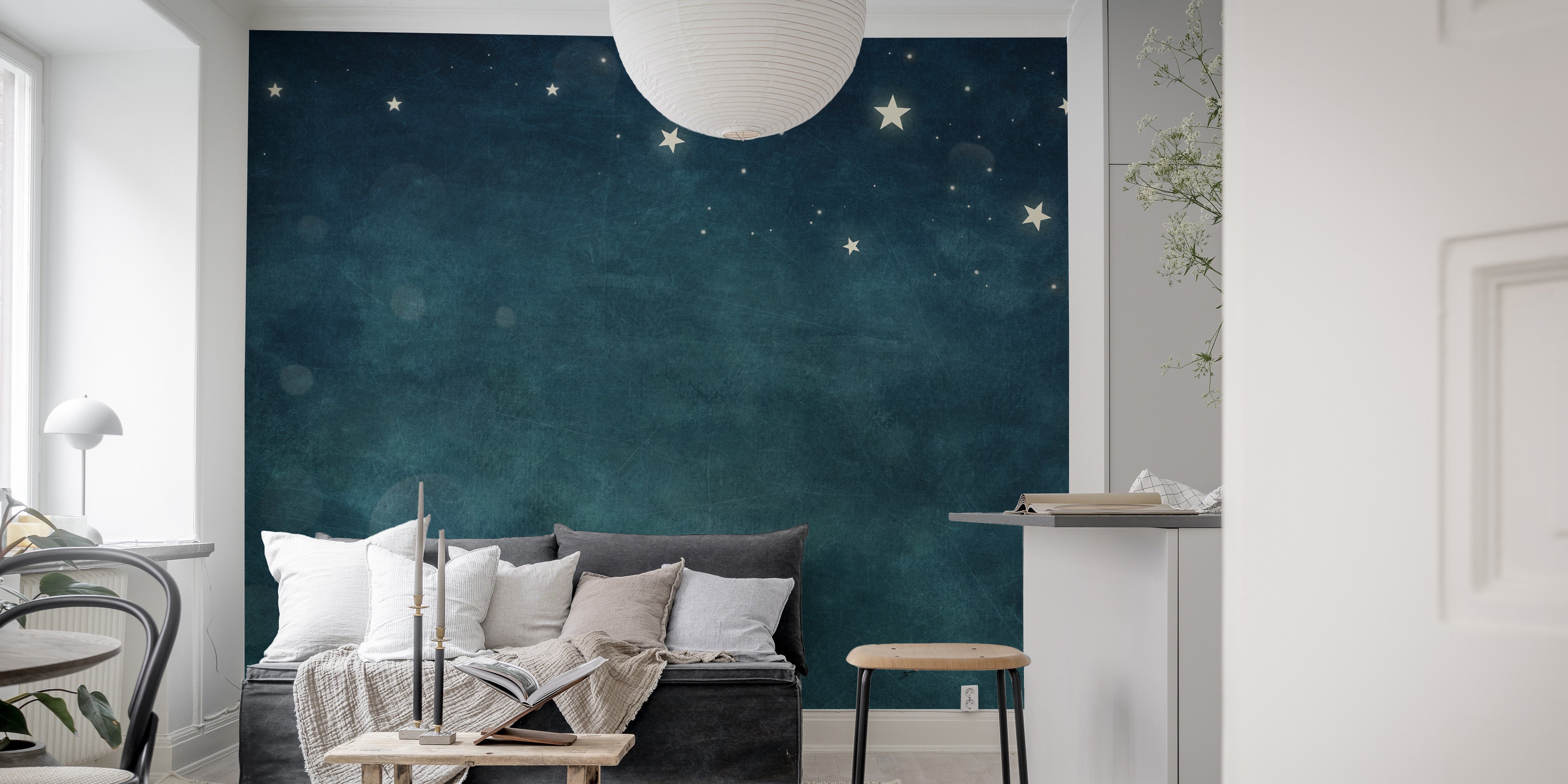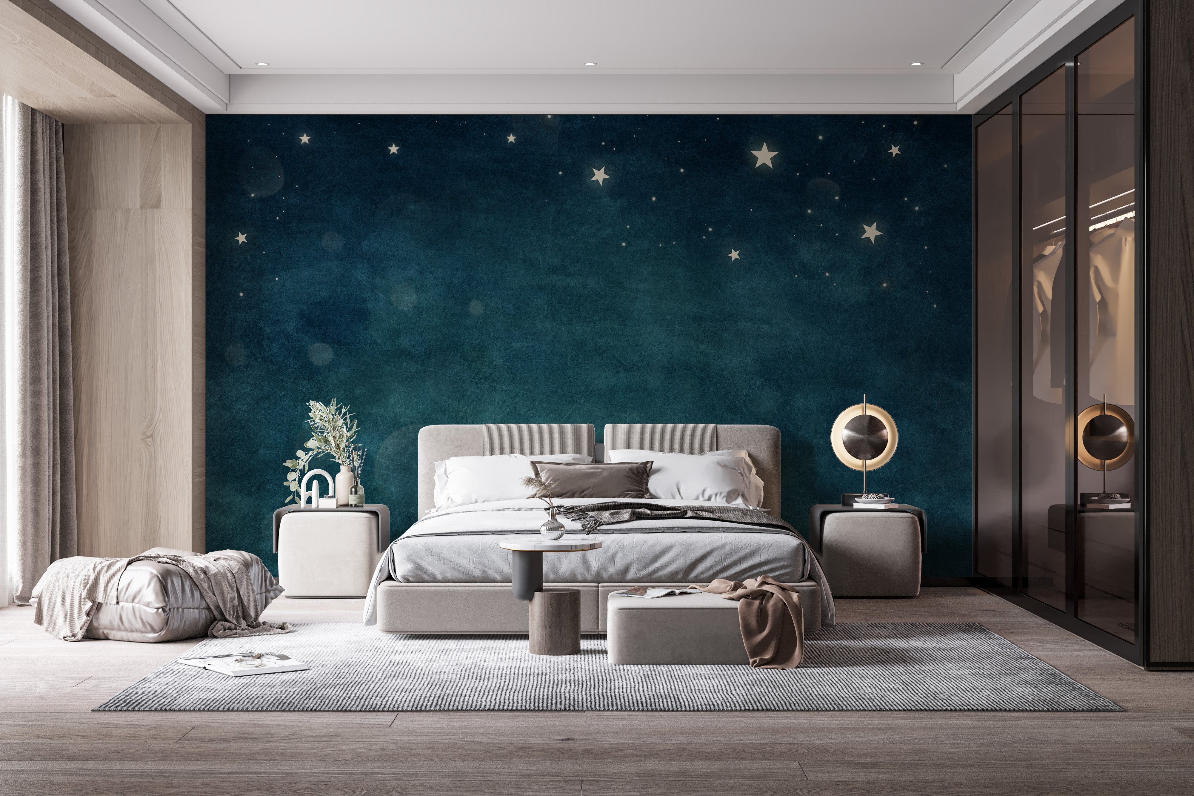 Elevate your space with our mesmerizing night sky starry design wallpaper. Crafted with a deep blue background, this mural captures the essence of a clear, starlit night. The intricate star patterns glow gently, making it the perfect choice for creating a calm and serene atmosphere. Whether you're looking to transform a nursery or simply bring the beauty of the night sky into your home, this design effortlessly blends the wonder of the universe with contemporary style. Ideal for those who appreciate sky wallpaper, this mural also caters to lovers of stars wallpaper designs. It serves as a stunning backdrop and evokes feelings of tranquillity and wonder, making it an impeccable choice for a nursery wallpaper. Dream big and reach for the stars with this enchanting design.