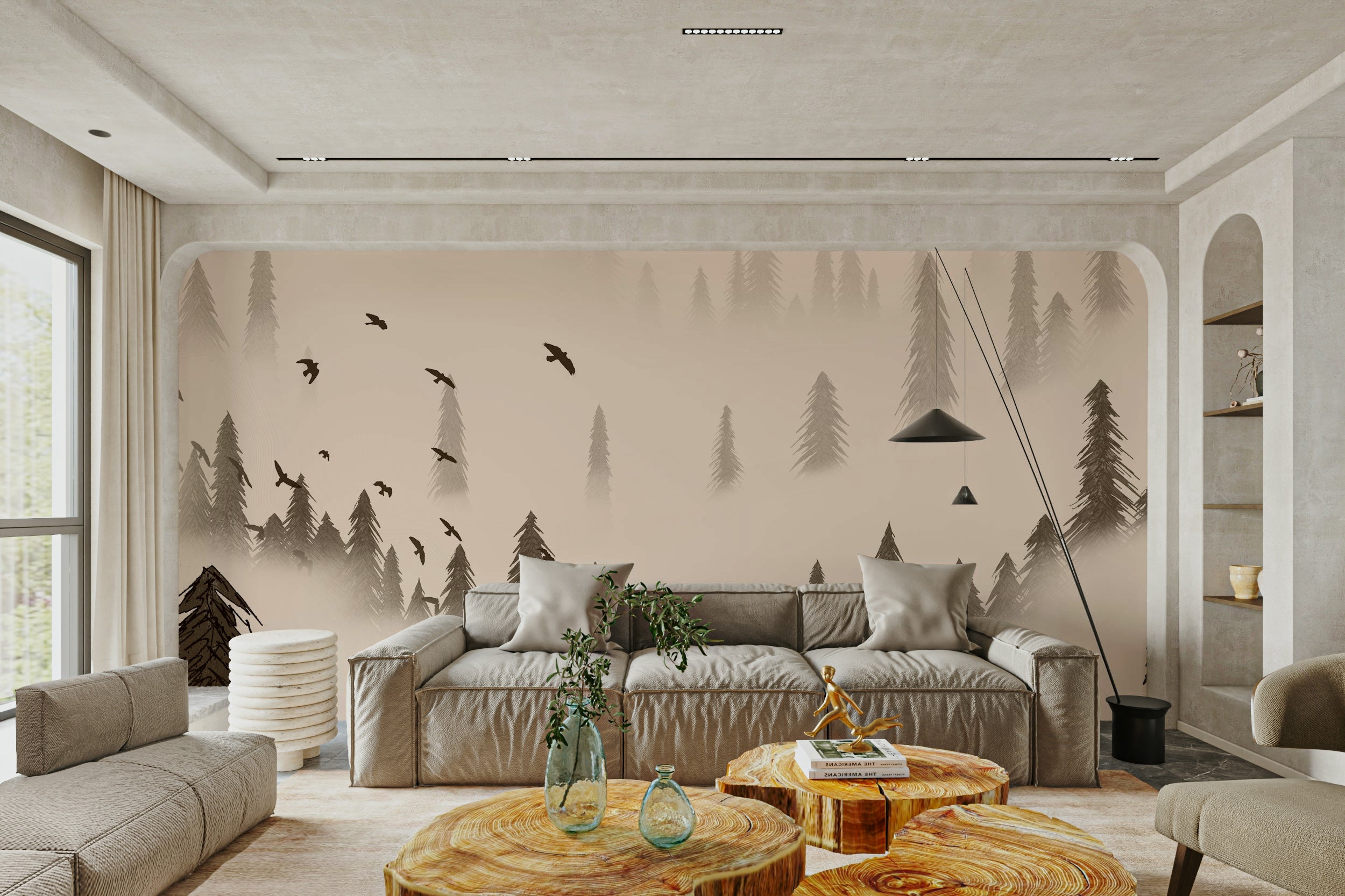 Northern Forest Sepia Wallpaper – Cozy Living Room Feature