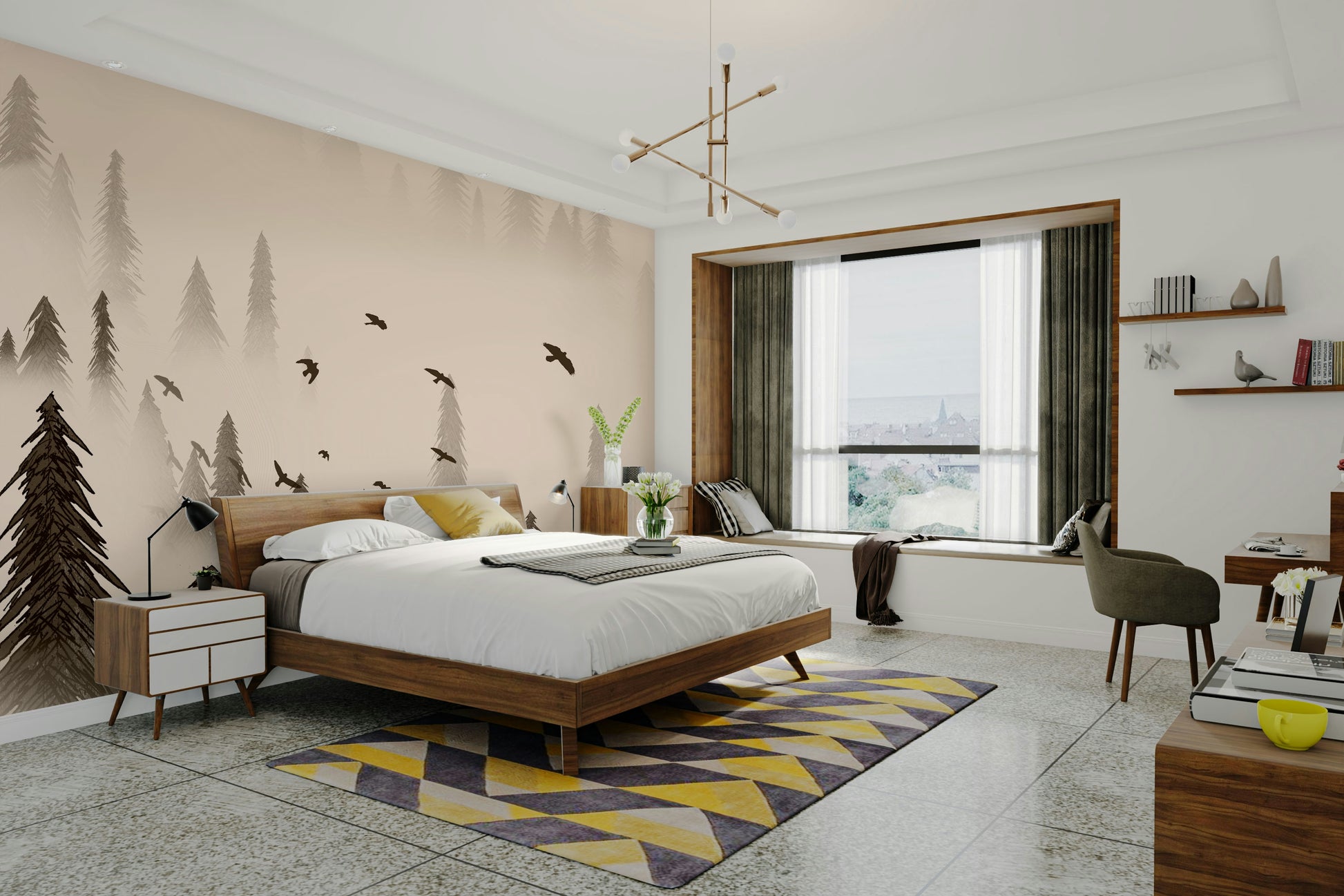 Northern Forest Sepia Wallpaper – Tranquil Bedroom Accent
