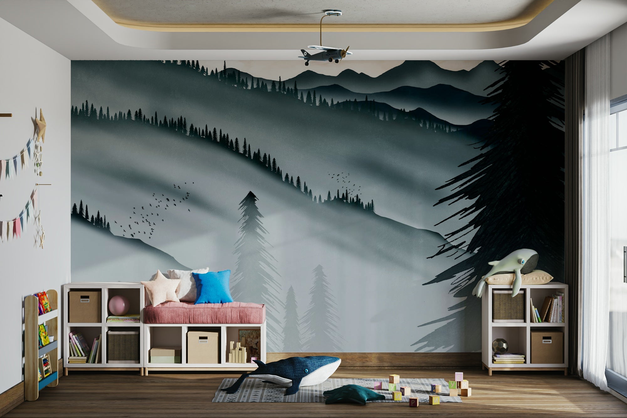With our Northern Land Wallpaper, you now have the chance to adorn your space with the picturesque illustration of a forest landscape. The design is also complemented by birds soaring in the sky which adds calmness and a relaxing feel to the piece. It is suitable for living areas, studies, or bedrooms. this wall painting speaks the language of the serene obstinate beauty of the nature. Capturing northerly untouched nature, this wallpaper brings calm and feel peace to any room with its soft colors and smooth texture. Also, easy use and careful design make this wallpaper a perfect deal for those who enjoy viewing murals and sceneries.