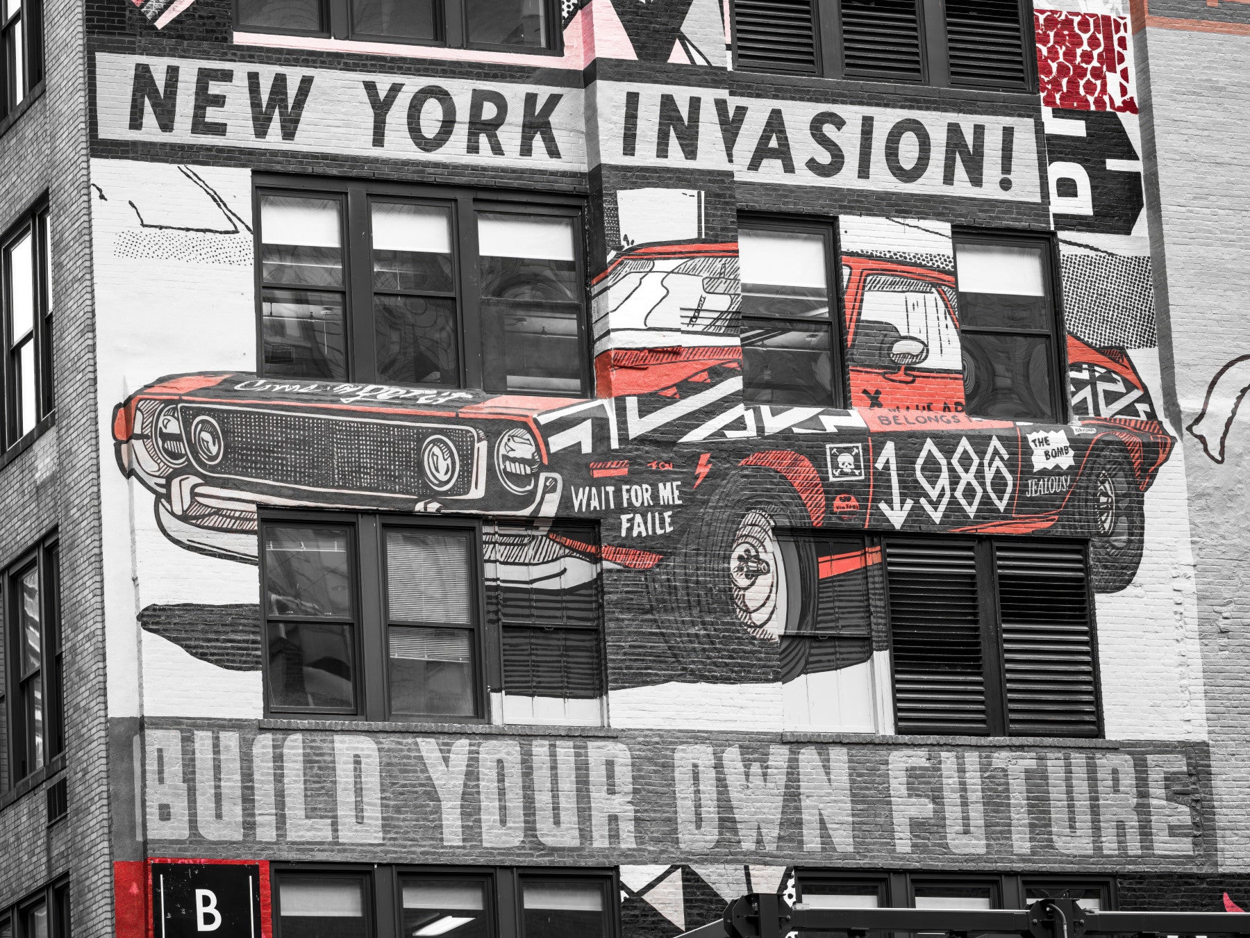 Inspiring "Build Your Own Future" NYC Car Mural custom wall art.