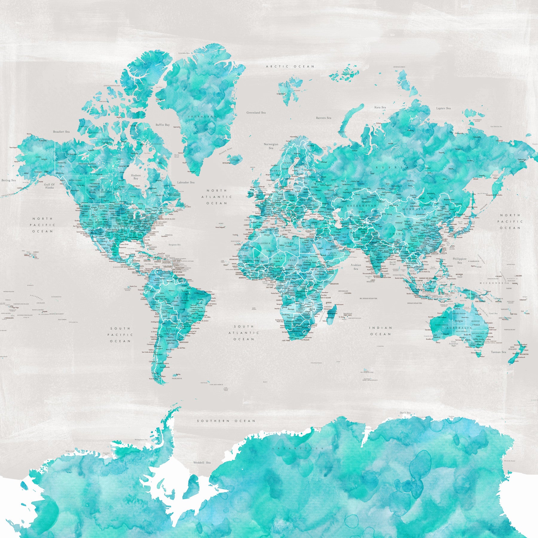Dive into a world of color and calm with the Ocean Blue Watercolor World Map Wallpaper. Featuring vivid shades of aqua, turquoise, and deep blue, this mural captures the essence of the sea in a beautifully artistic design. Each continent is clearly labeled with countries and cities, making it both decorative and educational. The soft watercolor texture blends effortlessly with modern, coastal, or minimalist interiors. Perfect for bedrooms, offices, classrooms, or creative spaces, this wallpaper is available in peel-and-stick or traditional formats and crafted using eco-friendly materials. Let your walls reflect your wanderlust with this refreshing ocean-inspired world map.