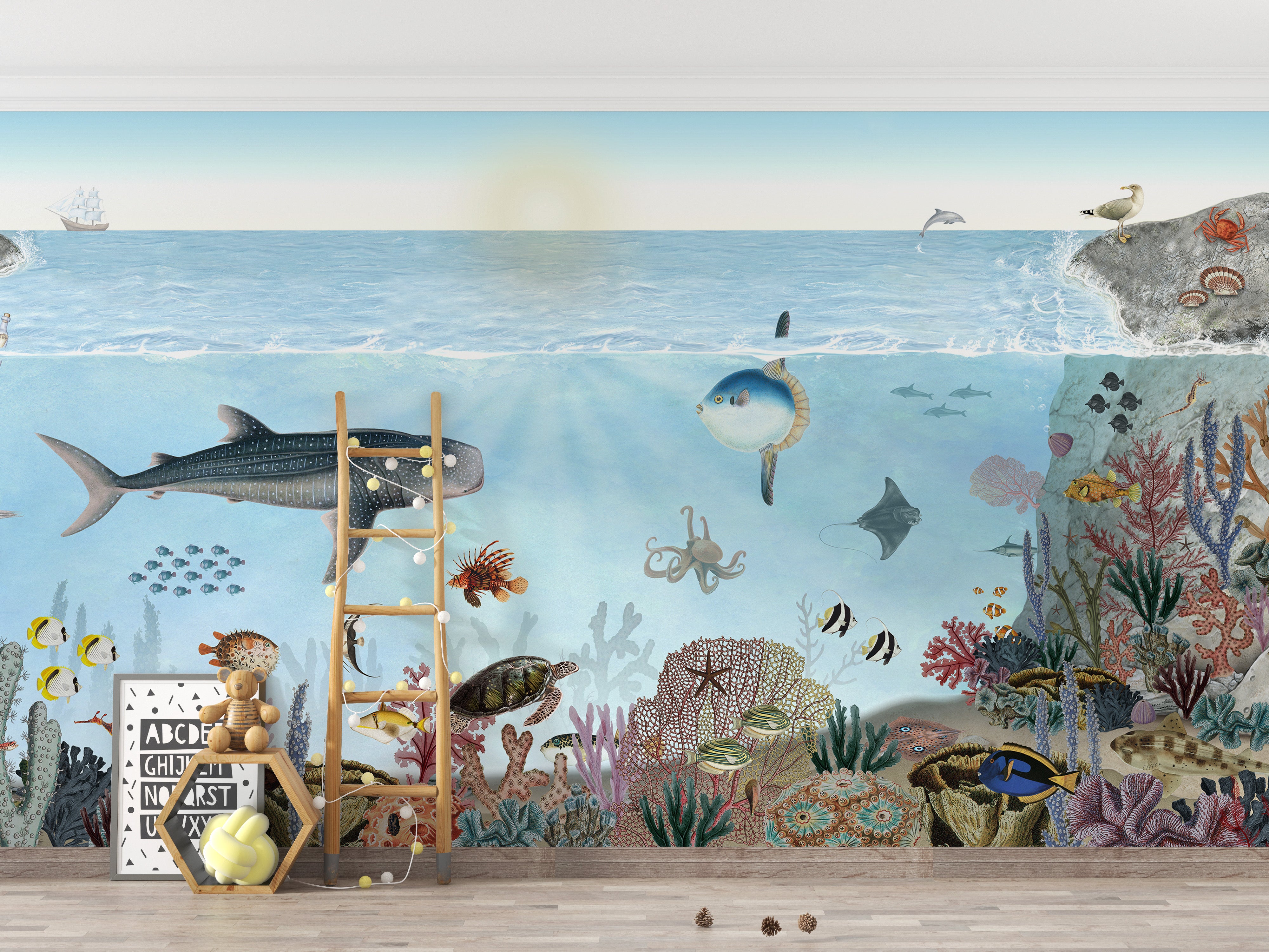 Ocean Lookbook mural wallpaper with vibrant sea creatures