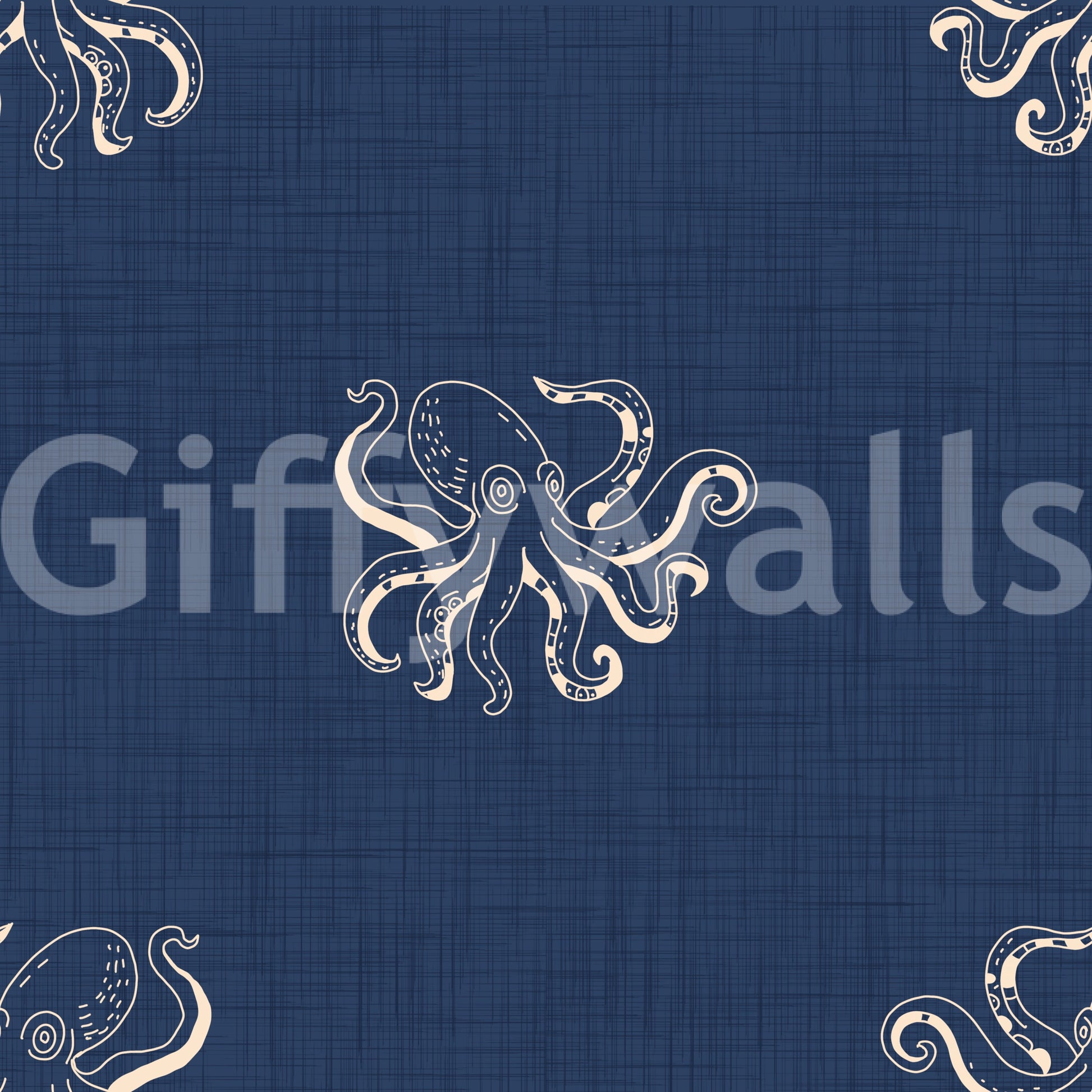 Dive into the depths of classic nautical lore with this 'Octopus Nautical Mythology' wallpaper. The design showcases a vintage-inspired illustration of an octopus, a legendary denizen of the sea, rendered in a clean, retro style. Against a textured, deep blue background reminiscent of aged canvas or antique nautical charts, the off-white octopus motif evokes a sense of timeless maritime adventure. This wallpaper brings a touch of mythical sea creature wonder to any space, perfect for adding a subtle yet captivating nautical aesthetic.