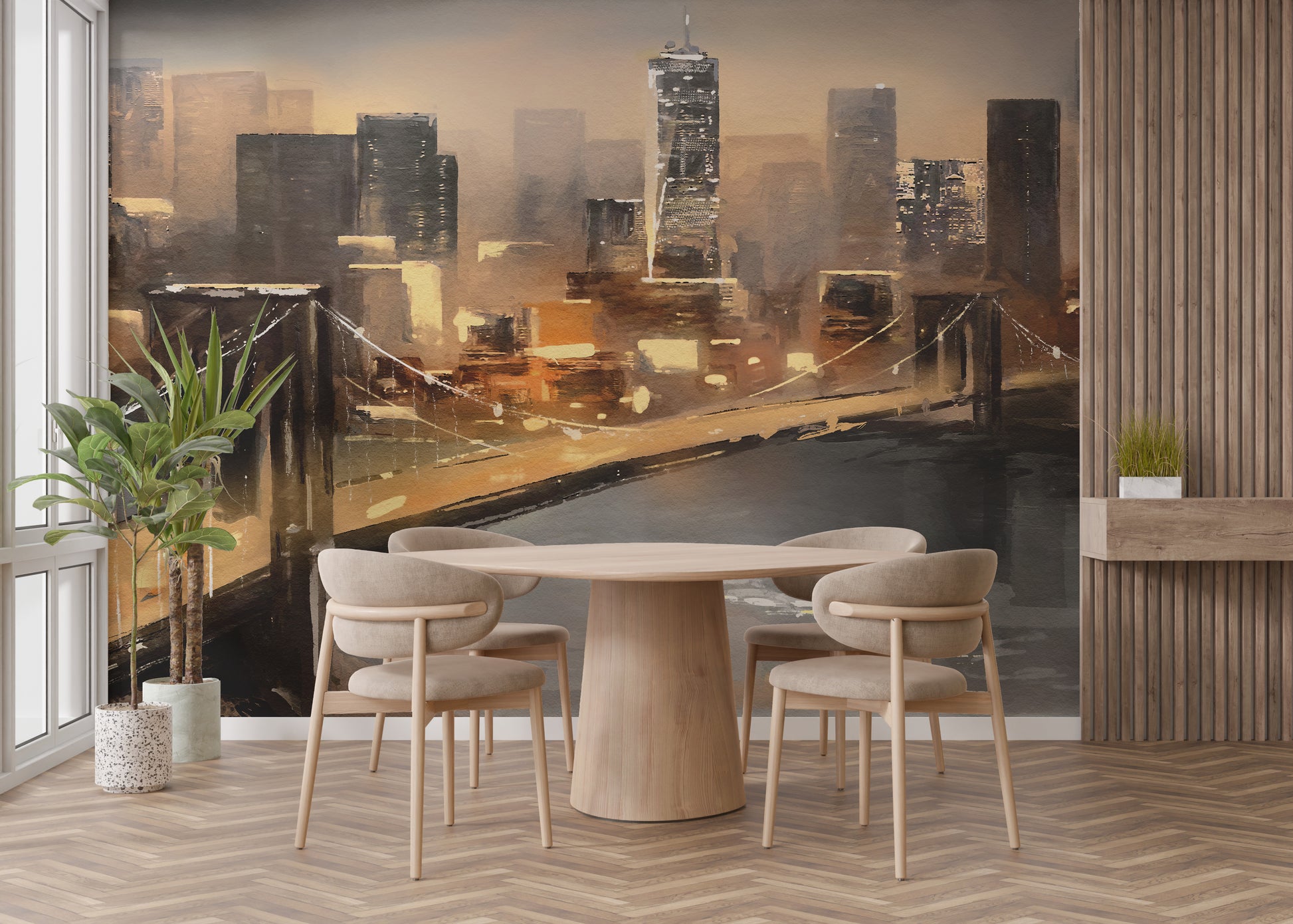 The latest addition to wall decor is the New York oil-painted design mural wallpaper. This wallpaper is the perfect solution for those looking to add a touch of elegance to their office space. The timeless beauty of oil paint has now been captured in wallpaper form, creating a sophisticated and chic masterpiece. This city wallpaper intricate brushstrokes and subtle blend of colours give the impression of a hand-painted masterpiece, making it the perfect backdrop for any office setting. Leave the monotony of plain walls behind and let this oil paint wallpaper inspire you to create a space that's genuinely worth working in.