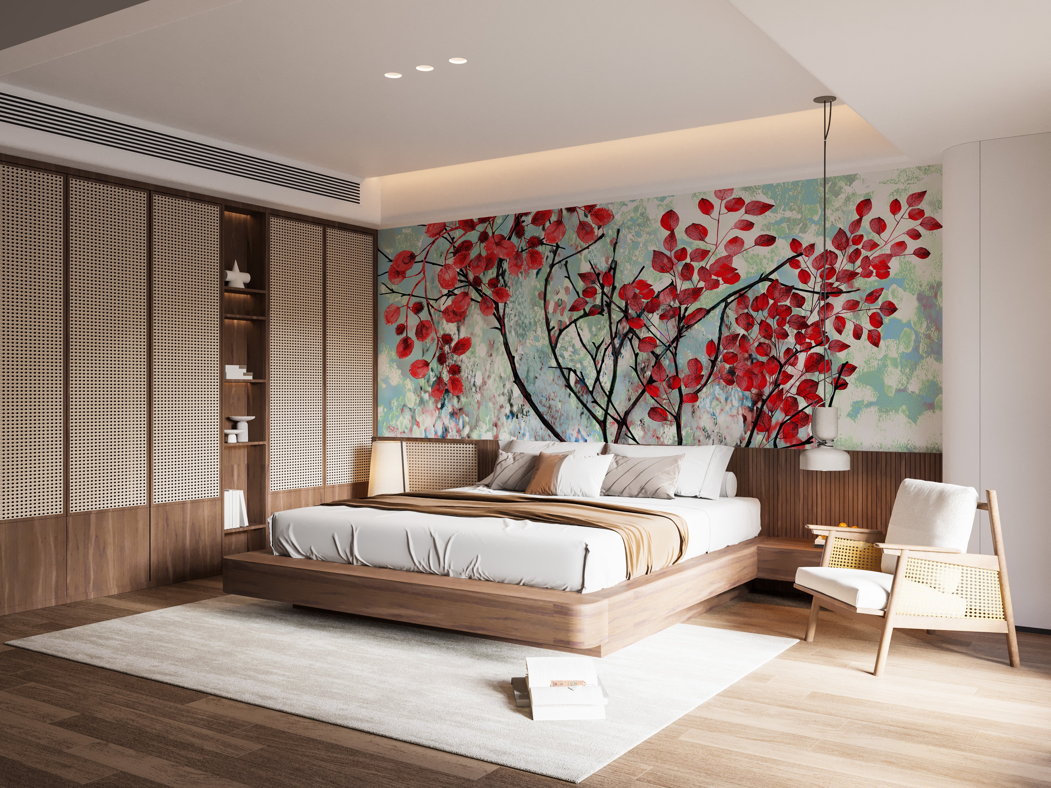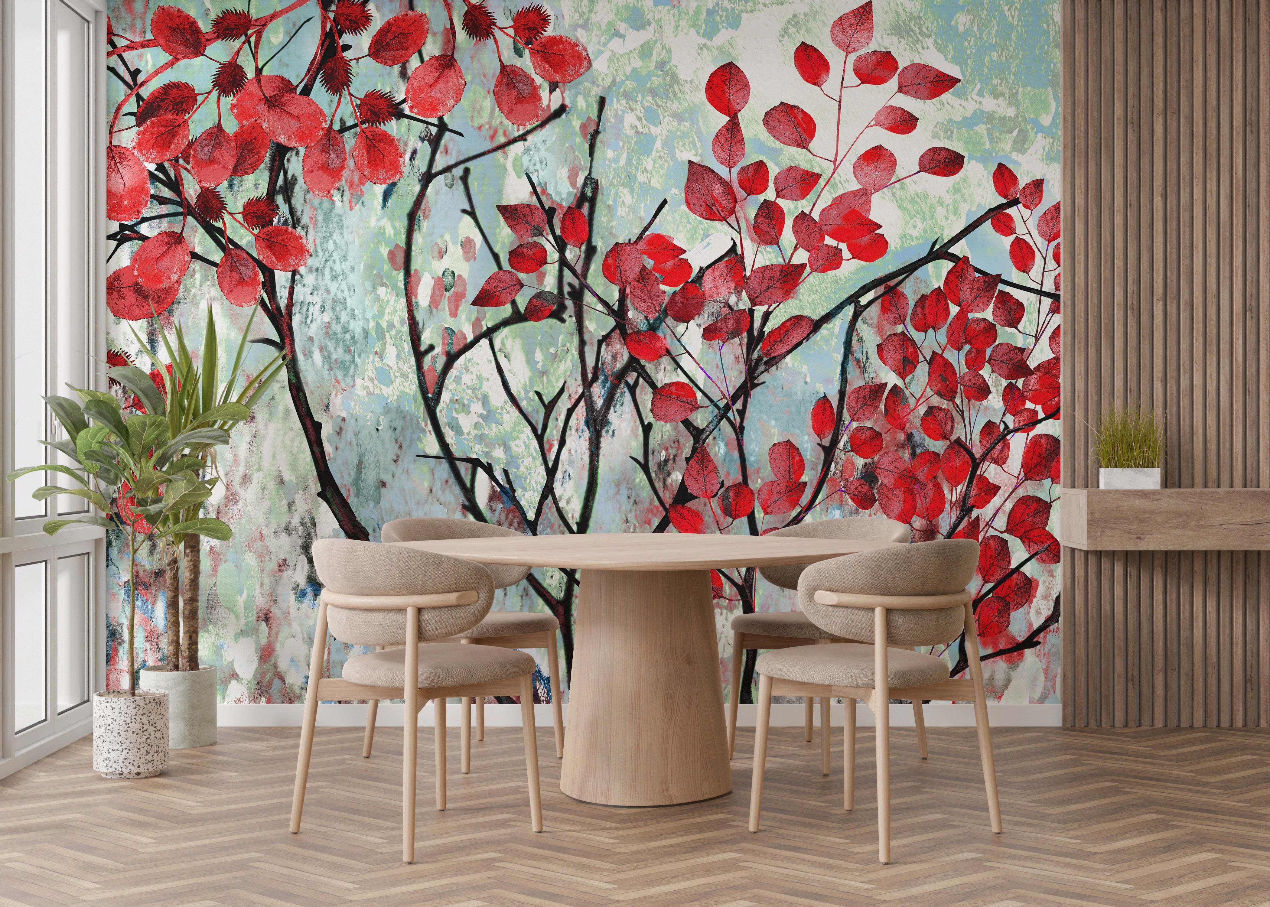 Embrace the warmth and vitality of nature with our Oil Painted Red Leaf mural wallpaper. This stunning design features a rich tapestry of red foliage rendered in exquisite oil paint textures that promise to infuse your living room with an atmosphere of sophistication and elegance. The vibrant hues and intricate details of the leaves wallpaper create a mesmerizing focal point that is both timeless and contemporary. Ideal for those looking to introduce a touch of organic beauty into their home, this red wallpaper is not just a backdrop but a statement piece that elevates your living space. Ideally suited for creating a serene retreat or a lively gathering spot, the Oil Painted Red Leaf mural is a versatile addition that complements a wide range of interior styles.