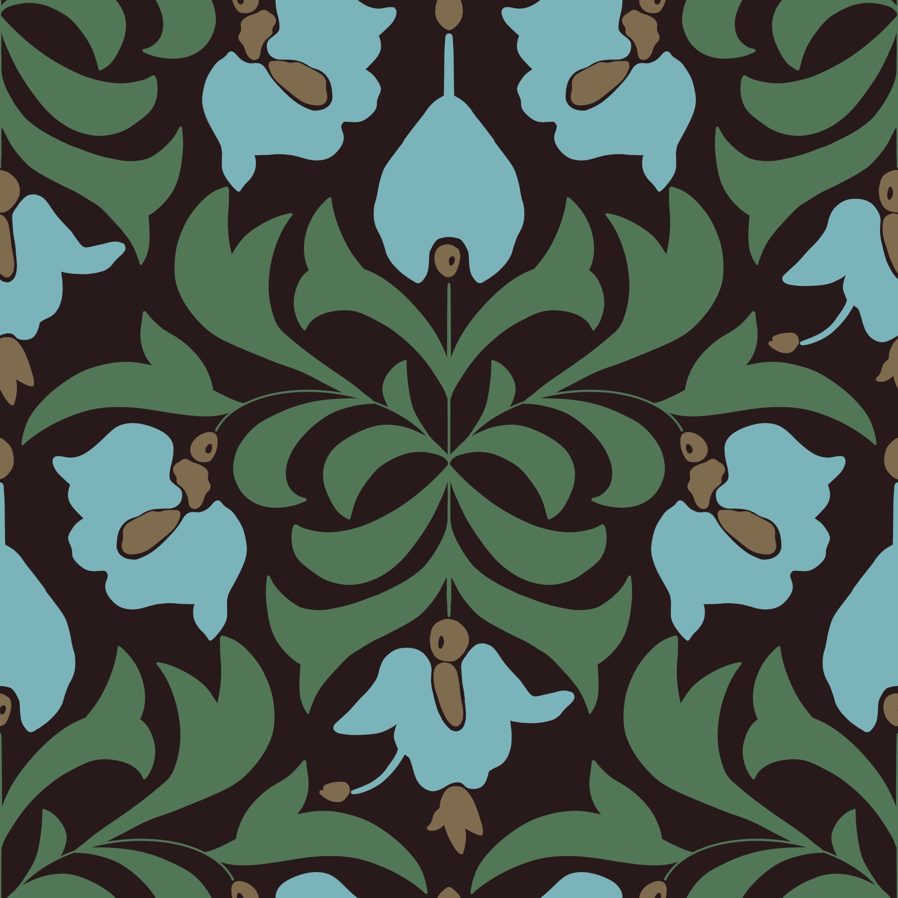 Embrace nostalgic style with this floral-themed wallpaper for walls. The design showcases mirrored stylized blue flowers and green foliage across a deep, earthy brown canvas. This wallpaper creates a warm and inviting atmosphere, perfect for dining rooms, entryways, or reading nooks. Its harmonious blend of colours ensures it elevates interiors with vintage refinement, making your space a haven of classic beauty.