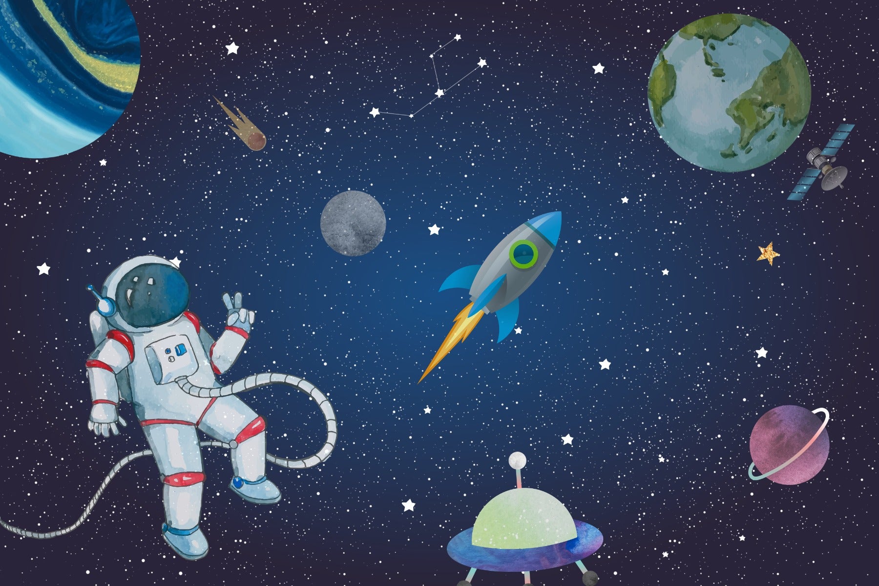 Orbiting Dreams Space Expedition Mural reusable wallpaper