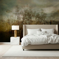 Invite a serene, vintage mood into your space with this nature-themed design. The muted olive and tan tones create a calming effect. Delicate branches intertwine across the design, layered for an intricate, organic feel. Perfect for a living room or bedroom, this wallpaper for walls adds a touch of quiet sophistication. It also works well in an entryway or office. The subtle textures complement both contemporary and traditional styles. This print will bring harmony and balance to your interiors.