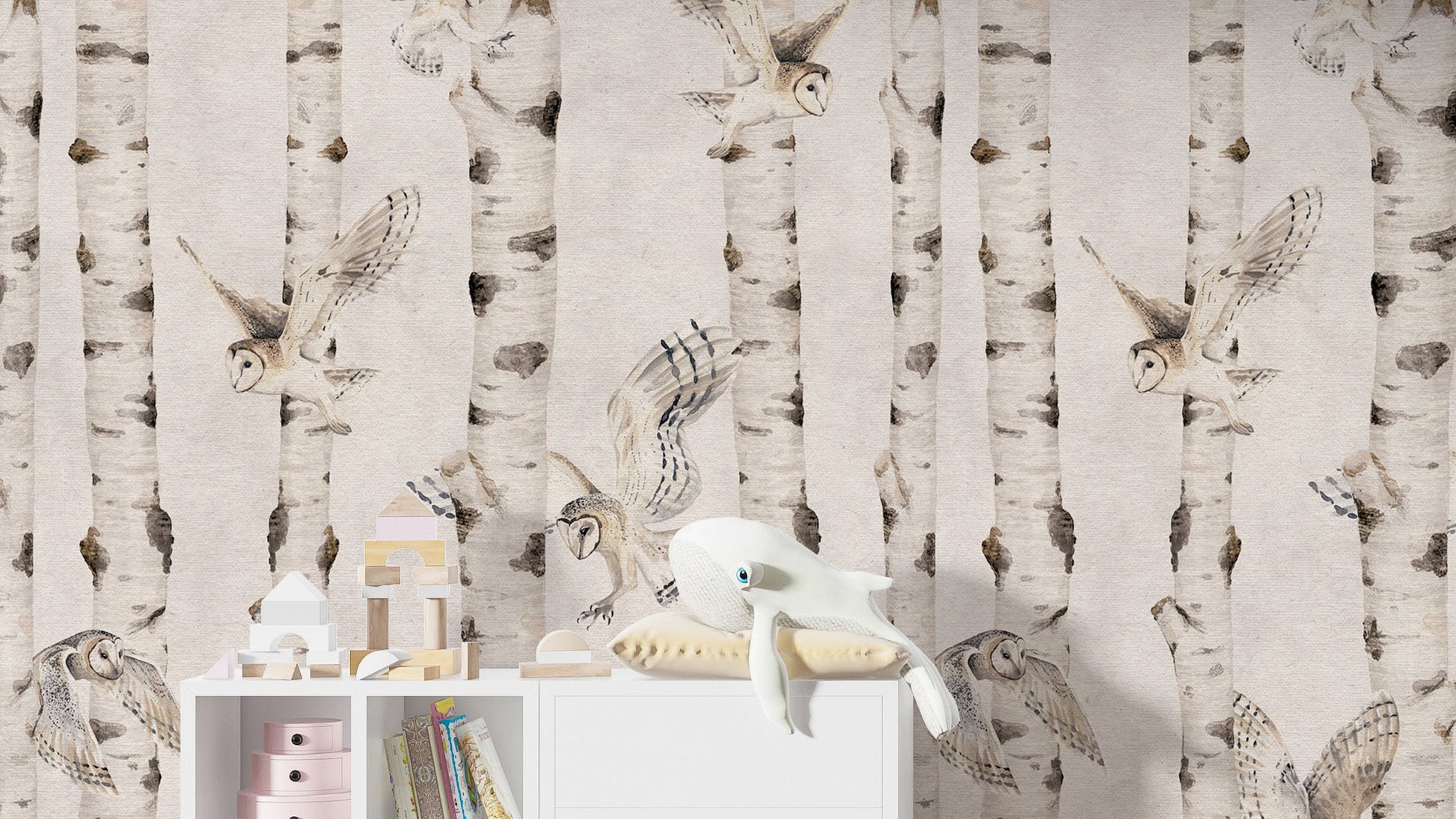 Bring the tranquility of the forest into your home with the Owl Birch Forest Wallpaper - White. Featuring majestic owls in flight among delicate birch trees, this design evokes a sense of calm and elegance. The warm beige tones add a cozy, natural touch, making it perfect for bedrooms, nurseries, or living spaces. Crafted with high-quality materials, this wallpaper is easy to install and remove, offering a seamless blend of beauty and practicality. Whether you’re creating a rustic retreat or a serene woodland escape, this wallpaper transforms your space with timeless charm and the soothing essence of nature.