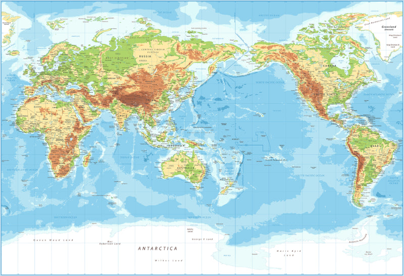 Pacific View Detailed World Map Wallpaper Murals - Giffywalls