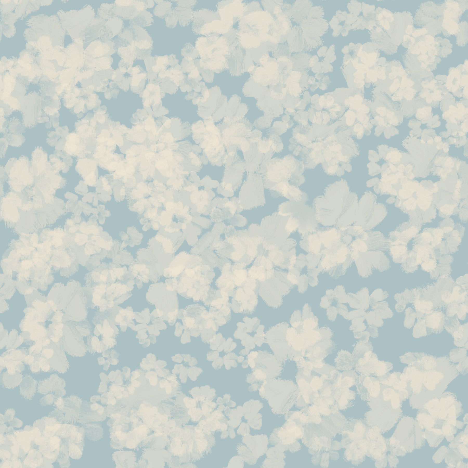 Painted Petals Calm wallpaper, gentle blue flower print, peaceful home design.