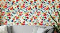 Immerse yourself in the vibrant energy of 'Painterly Flowers Tropical Red'. This wallpaper bursts with a breathtaking array of watercolor blooms, showcasing a masterful blend of tropical hues. Deep reds dominate, complemented by splashes of sunny yellows, lively oranges, and cool blues and greens, creating a dynamic and lively visual tapestry. The painterly style lends a loose, expressive quality, making each flower appear uniquely alive. Perfect for adding a touch of artistic exuberance and summery warmth to any digital space, this design is both striking and subtly calming, a perfect balance of energy and serenity.