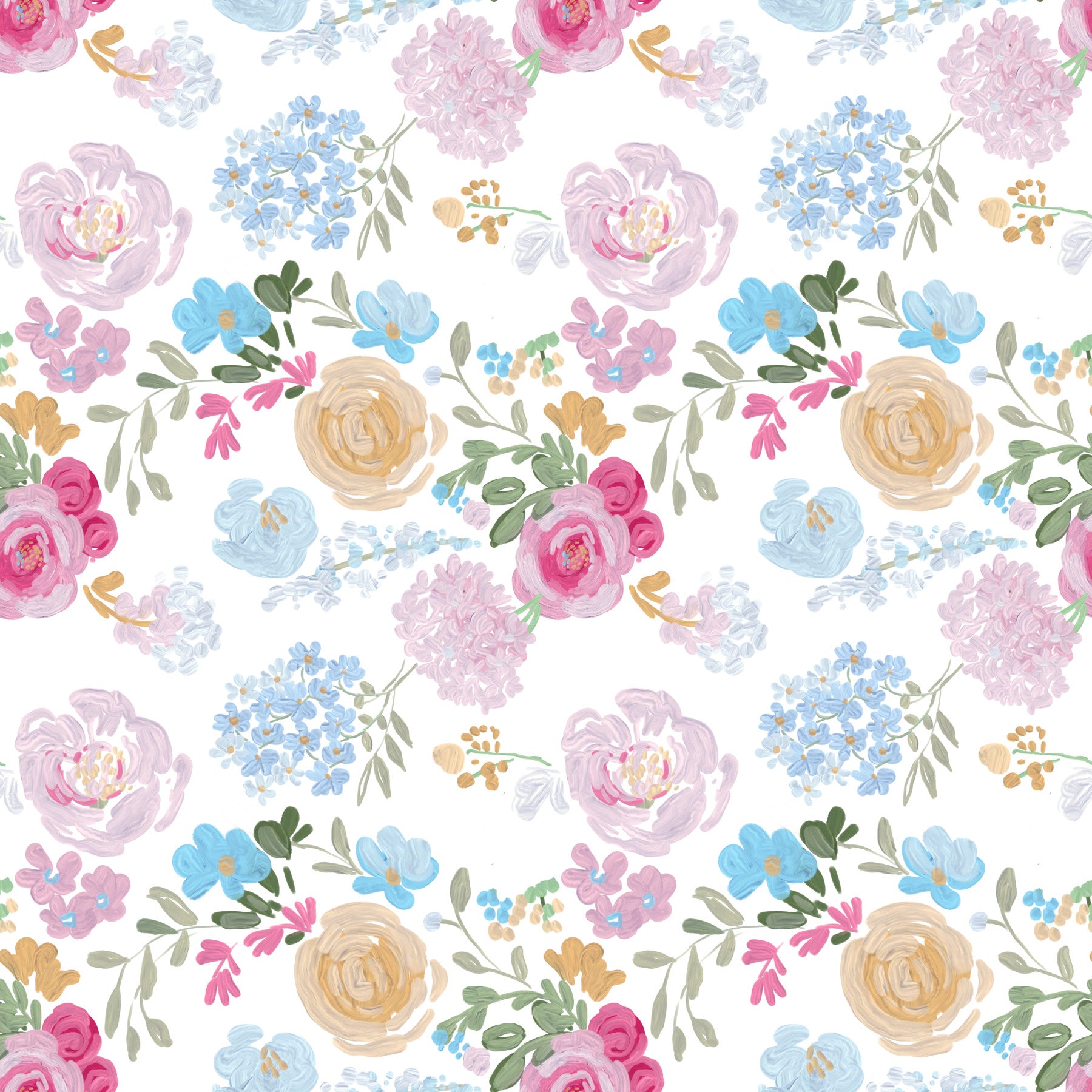 Elevate any space with this floral pattern. See the gentle watercolour style and bring delicate beauty to your room. This wallpaper for walls features blooming flowers in soft pink, lavender, blue, and cream. The texture creates a calming ambiance. It's ideal for a bedroom or bathroom, adding an artistic charm. The subtle colours and painterly style complements Scandinavian and boho interiors, offering a fresh and stylish look to your home.