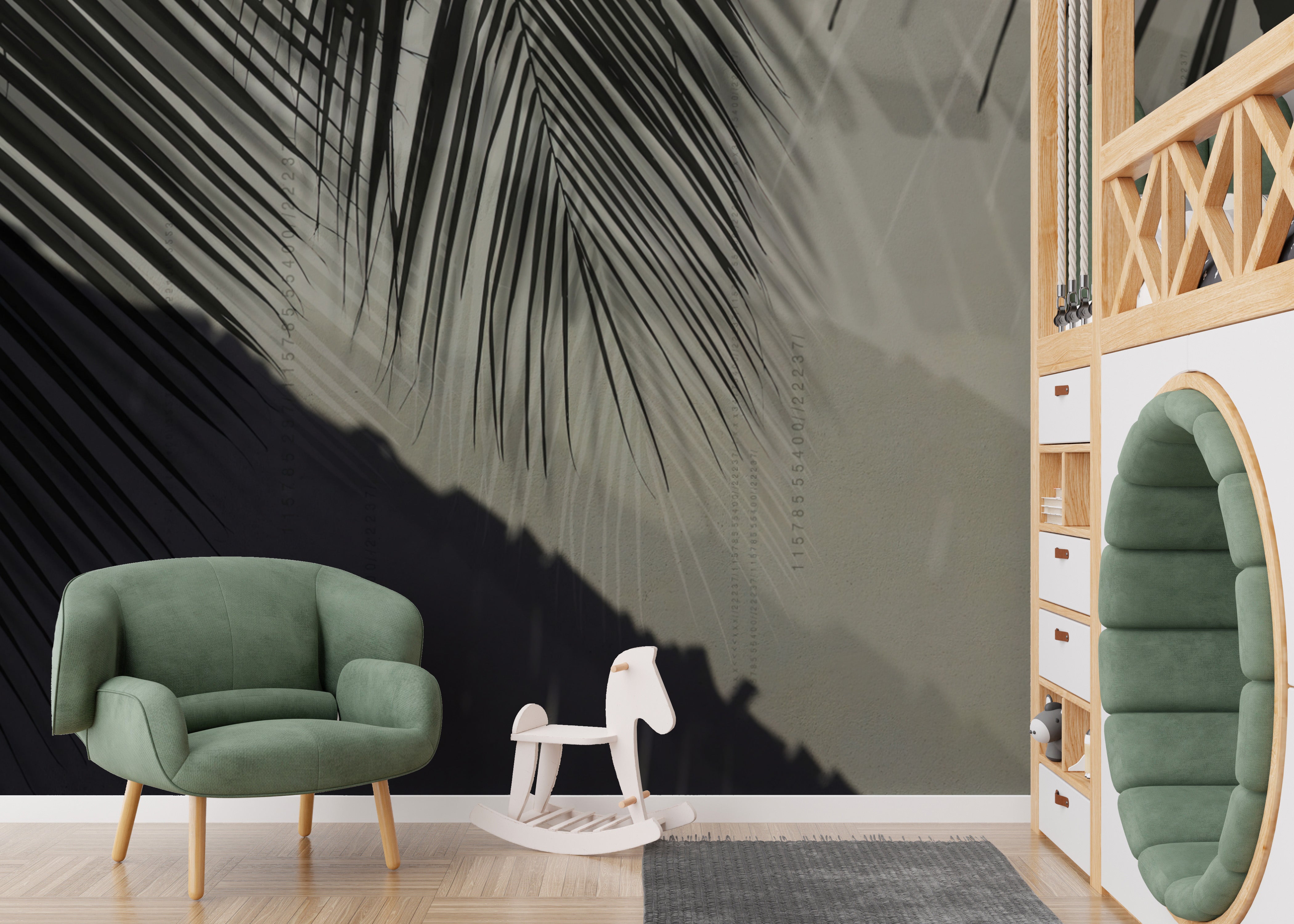 Elegant palm leaf shadow mural for a serene tropical vibe.