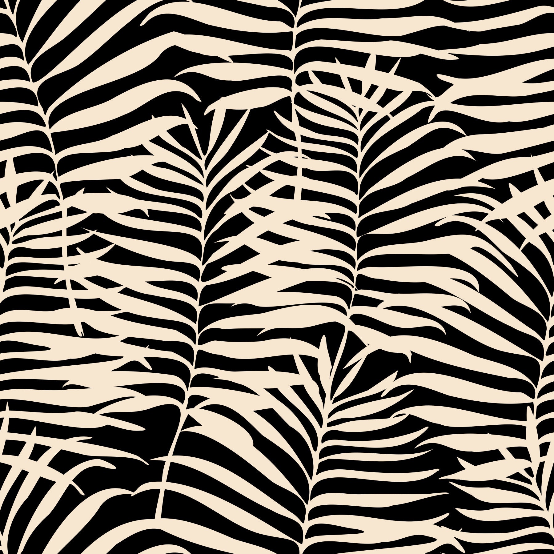 Bring bold style inside with this captivating leaf design. It features an artful arrangement of palm fronds in a modern monochrome color palette. The graphic shapes make a stylish statement as a wallpaper for walls in any room. Let it transform your living room, bedroom, or hallway into a tropical retreat with a dramatic twist. Its versatility complements a range of interiors, from minimalist to mid-century modern, adding a touch of botanical charm.