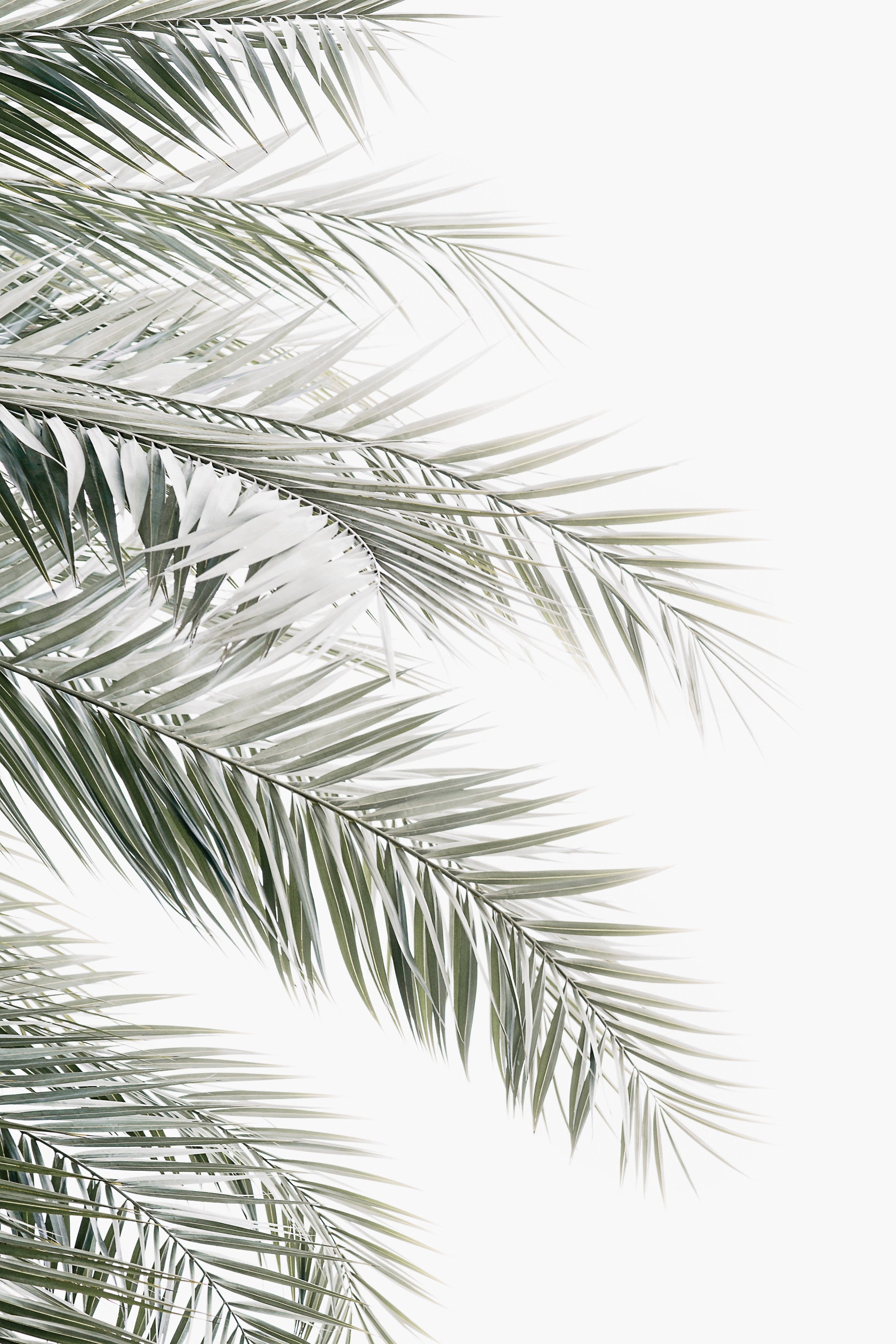 Bring a touch of the tropics to your home with this calming palm leaf design. Featuring soft green hues against a crisp white backdrop, this wallpaper for walls creates a light and airy ambiance. The minimalist aesthetic complements modern and Scandinavian interiors, brightening living rooms, bedrooms, and even bathrooms. Embrace a tranquil vibe and transform any space into a peaceful retreat with this serene botanical design.