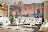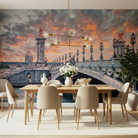 Parisian Bridge Sunset Wall Mural