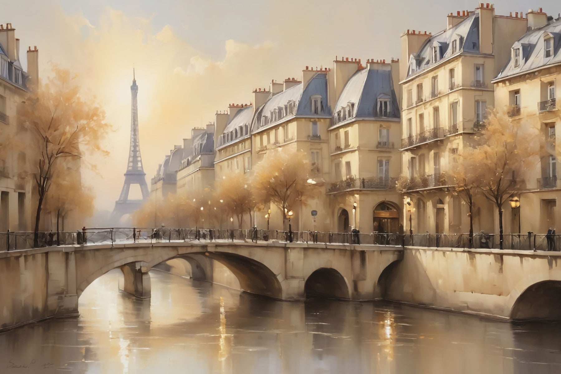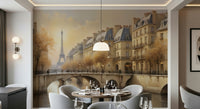 Capture the quiet beauty of a Parisian morning with this stunning wallpaper for walls. This design showcases a tranquil scene of the city, complete with charming architecture, a peaceful river, and the distant silhouette of the Eiffel Tower. The muted colour palette of soft beige, grey, and subtle blues creates a soothing and sophisticated atmosphere. This wallpaper works beautifully in bedrooms, living rooms, or any space where you want to create a sense of calm and elegance. The gentle reflections in the water and the delicate brushstrokes enhance the feeling of serenity, adding depth and visual interest to your interior decor.