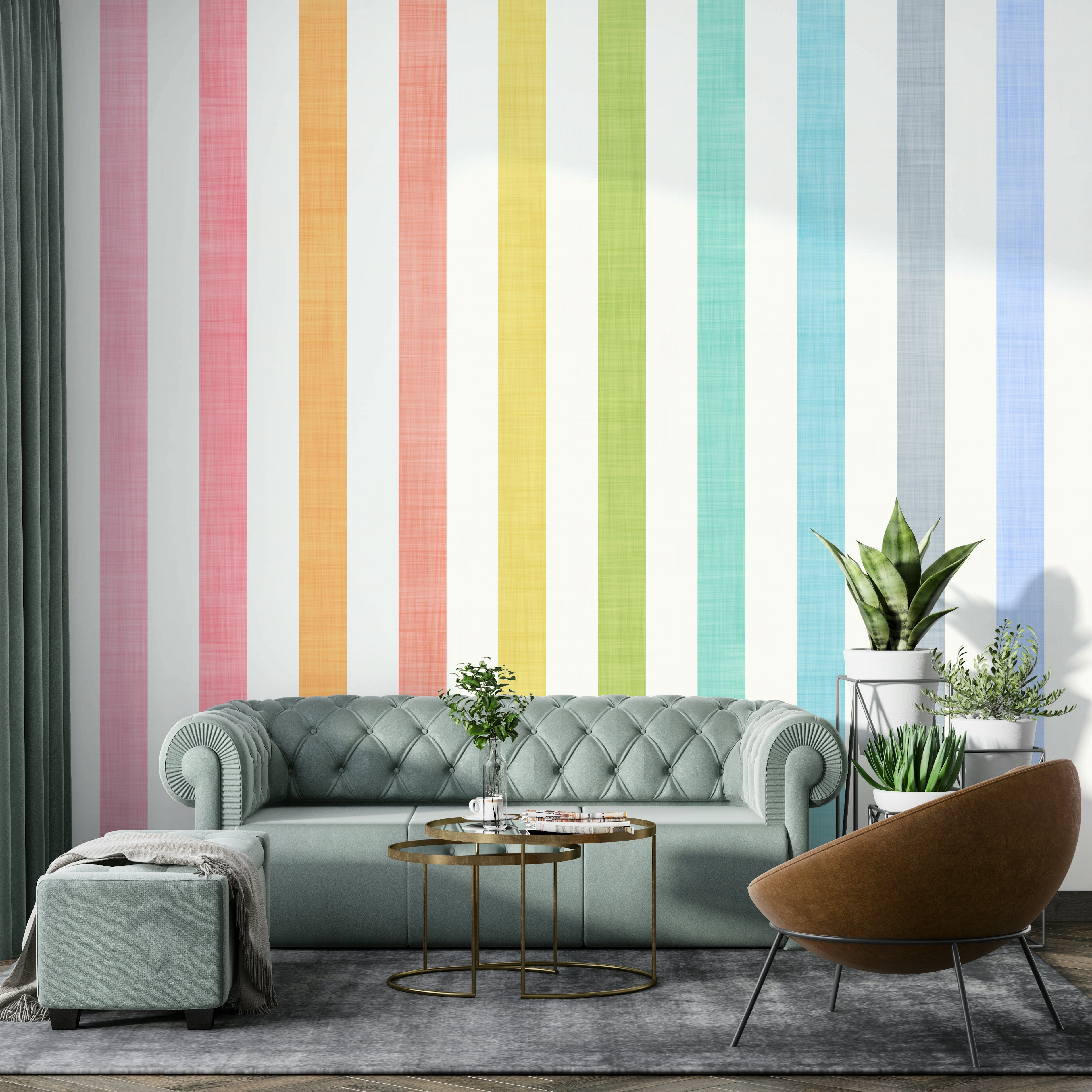 Bring a gentle touch of color to your walls with the Pastel Breeze Vertical Stripes Wallpaper. Featuring soft, airy stripes in rainbow-inspired pastel hues, this design creates a bright and uplifting atmosphere without overwhelming the space. The subtle linen texture adds depth and elegance, making it perfect for nurseries, kids' rooms, or playful modern interiors. Whether you're looking to energize a room or simply add a splash of happiness, this wallpaper blends seamlessly with minimalist, vintage, or eclectic décor styles. Let every stripe tell a story of calm, creativity, and color with this charming wallpaper design.