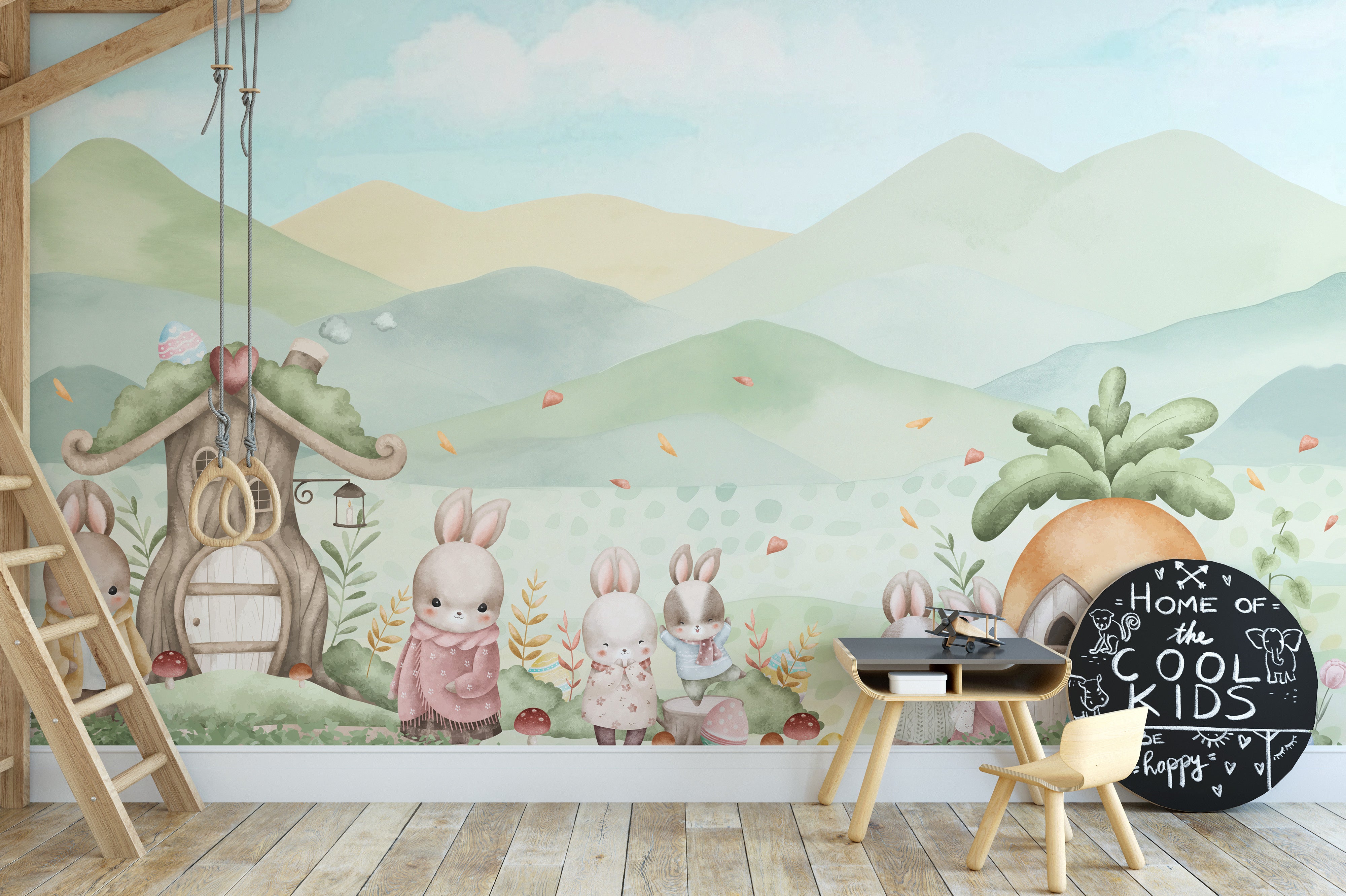 Looking for a cute Easter wallpaper for your nursery or kitchen? This Pastel Bunny Easter Mural Wallpaper is just what you need. With soft pastel colors, playful bunnies, and Easter eggs, it’s perfect for adding a fun spring vibe to small spaces. It’s a peel and stick wallpaper that’s easy to apply and safe for renters. Whether you're decorating a kids’ room or updating your walls for Easter, this removable Easter wallpaper makes it simple. If you want bunny wallpaper that feels fresh and festive, this Easter-themed wallpaper is a great choice for your home this spring.